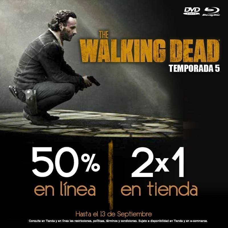 Blockbuster tiene en oferta la Serie de The Walkind Dead temporada 5 en Tienda Física al 2×1 ó compra en línea con 50% de descuento. Recuerda que si compras en línea puedes recoger en tienda sin costo de envío. Pregunta por títulos participantes. No olvides consultar las restricciones.