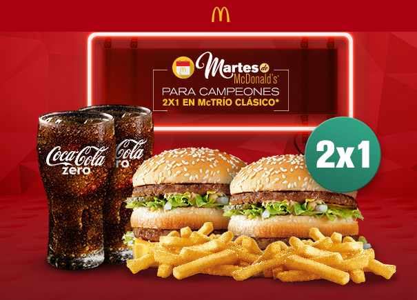 McDonalds tiene un cupón de descuento especial para el día de hoy martes 3 de mayo del 2016. El cupón es de 2×1 en McTrío Clásico y para hacer válida la promoción debes descargar y presentar el siguiente cupón 2×1 en McTrío Clásico. A continuación te comparto los términos y condiciones de la promoción.