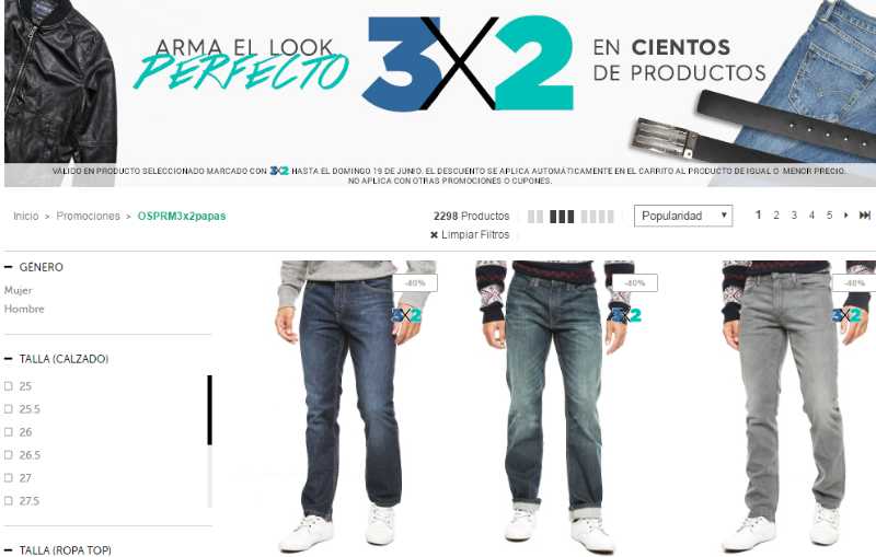 La tienda en linea Ösom (antes Dafiti) tiene la promoción de 3×2 en cientos de productos para hombre por motivo del día del padre, simplemente metan al carrito de compras 3 productos participantes y les aplica el descuento en automático.