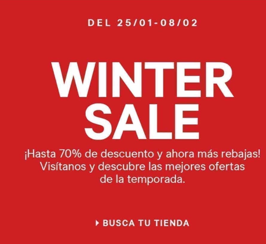 H&M tiene sus segundas rebajas de fin de temporada “Winter Sale”con hasta 70% de descuento en mercancía seleccionada. La promoción es en tiendas físicas porque su página web sirve sólo como catálogo.
