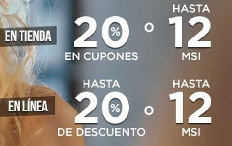 • Hasta 20% de descuento o hasta 12 meses sin intereses (sólo tienda en linea)
