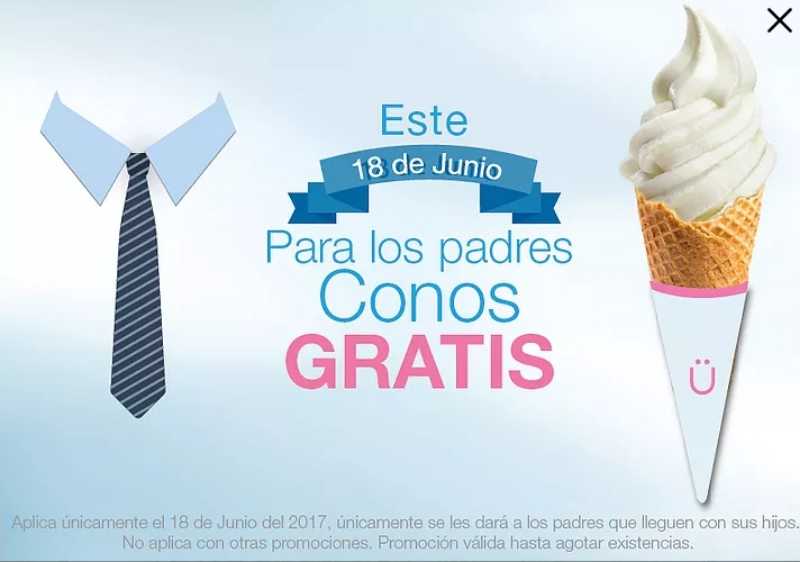Yogen Fruz festeja el día del padre este 18 de junio estará regalando conos a todos los papás  que se presenten con sus hijos, aprovecha y ve por tus conos Gratis, no te lo pierdas. No aplica con otras promociones.