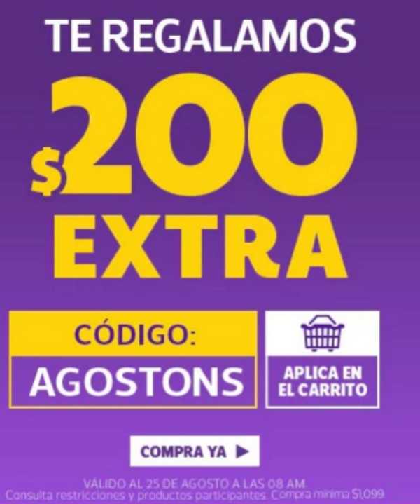 Esta promoción es válida hasta el 25 de agosto a las 8 a.m. El mínimo de compra para utilizar el cupón es de $1,099 pesos. Consulta restricciones.