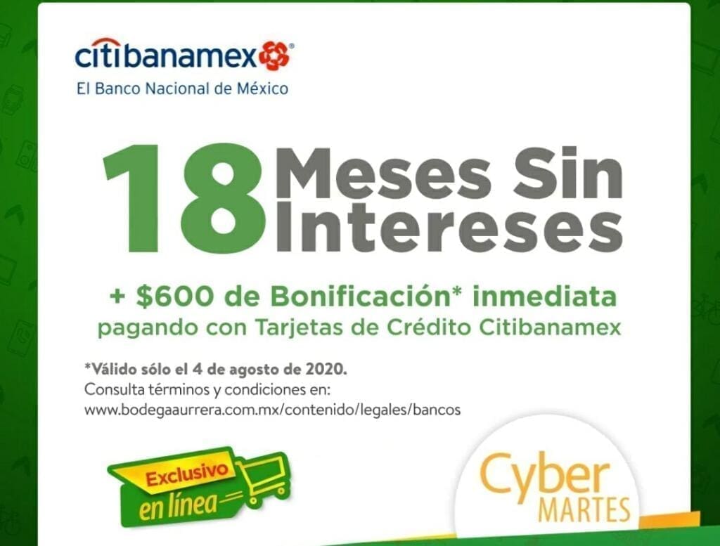 La tienda en línea de Bodega Aurrera tiene la promoción de 18 MSI + Bonificación Inmediata de $600 pagando con tarjetas Citibanamex.