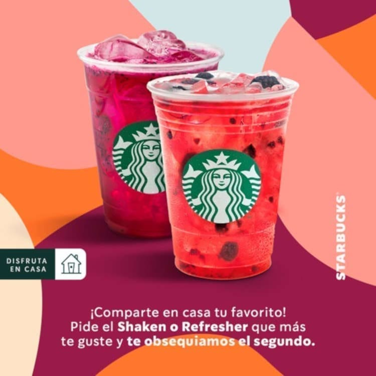 Starbucks te ofrece la promoción de 2X1 en Shakens y Refreshers tamaño grande (400mL) o venti (500mL). Aquí puedes descargar el cupón.