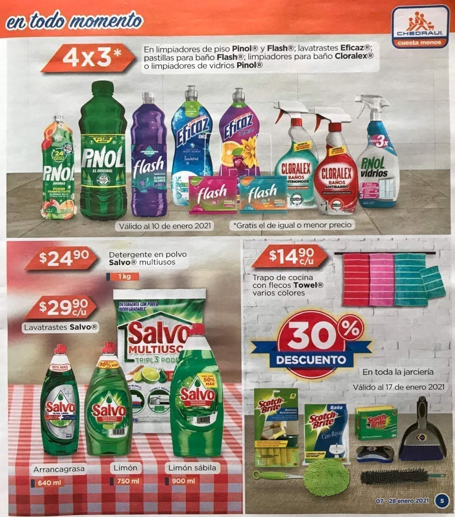 - 4×3 en limpiadores de piso Pinol y Flash, lavatrastes Eficaz, pastillas para baño Flash, limpiadores para baño Cloralex o limpiadores de vidrio Pinol.