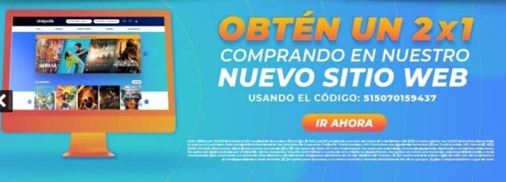 Cinépolis tiene nuevo sitio web y para estrenarlo tiene un cupón de descuento del 2×1 en entradas comprando en su nueva página web la promoción es válida usando el código 515070159437.