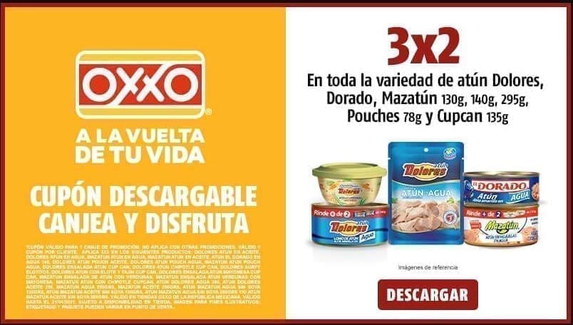Las tiendas OXXO tienen la promoción de 3×2 en Atún dolores, dorado, Mazatún, Pouches y Cupcan al descargar el cupón de descuento desde su página oxxo.com e iniciando sesión con facebook y google.