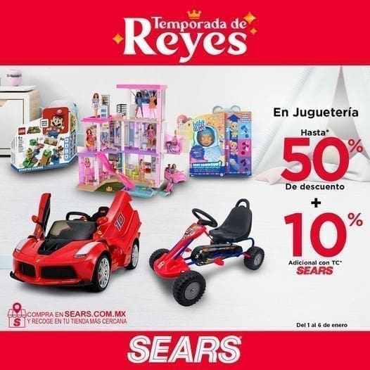 • Hasta un 50% de descuento + un 10% de descuento adicional con tu Tarjeta Sears en Juguetería.
