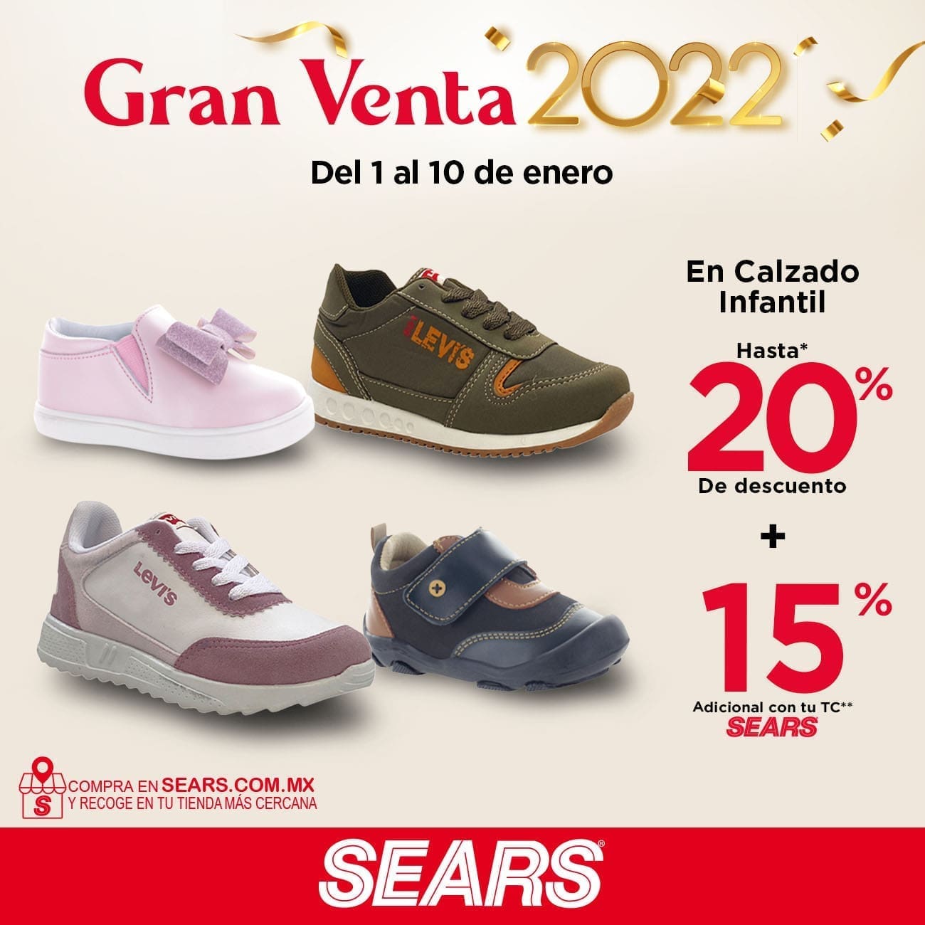 • Hasta 20% de descuento + 15% de descuento adicional con tu tarjeta Sears en Calzado Infantil.