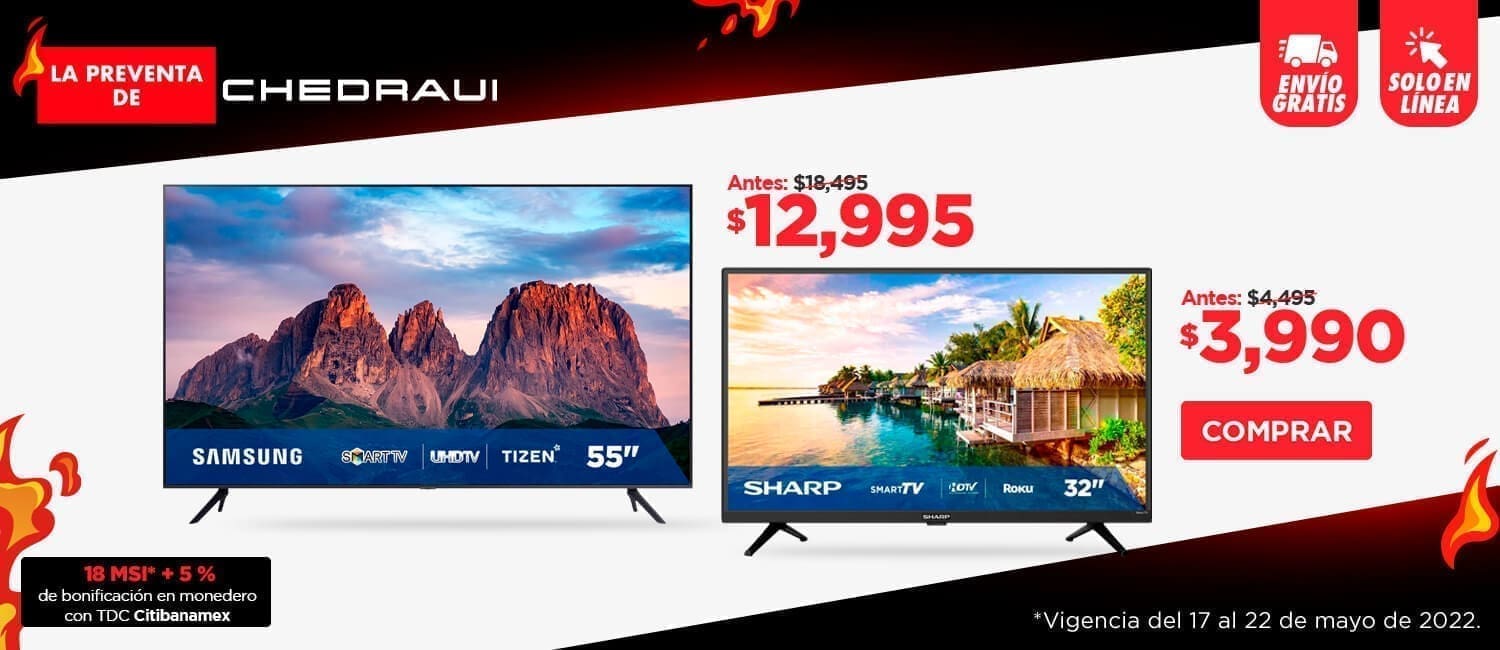 • Smart TV Samsung UHDTV Tizen de 55’’ de $18,495.00 a $12,995.00