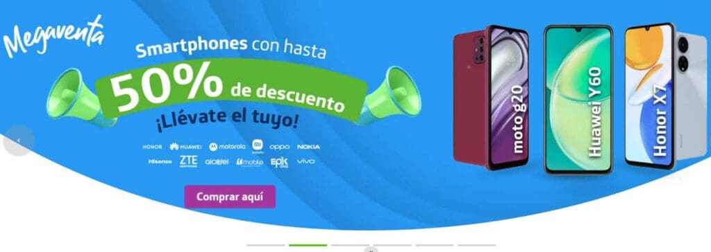 Movistar tiene una venta especial llamada Megaventa en la que ofrece promociones de hasta un 50% de descuento en Celulares. Además puedes aprovechar de Envíos Gratis y Meses sin intereses si pagas con tarjetas bancarias participantes.