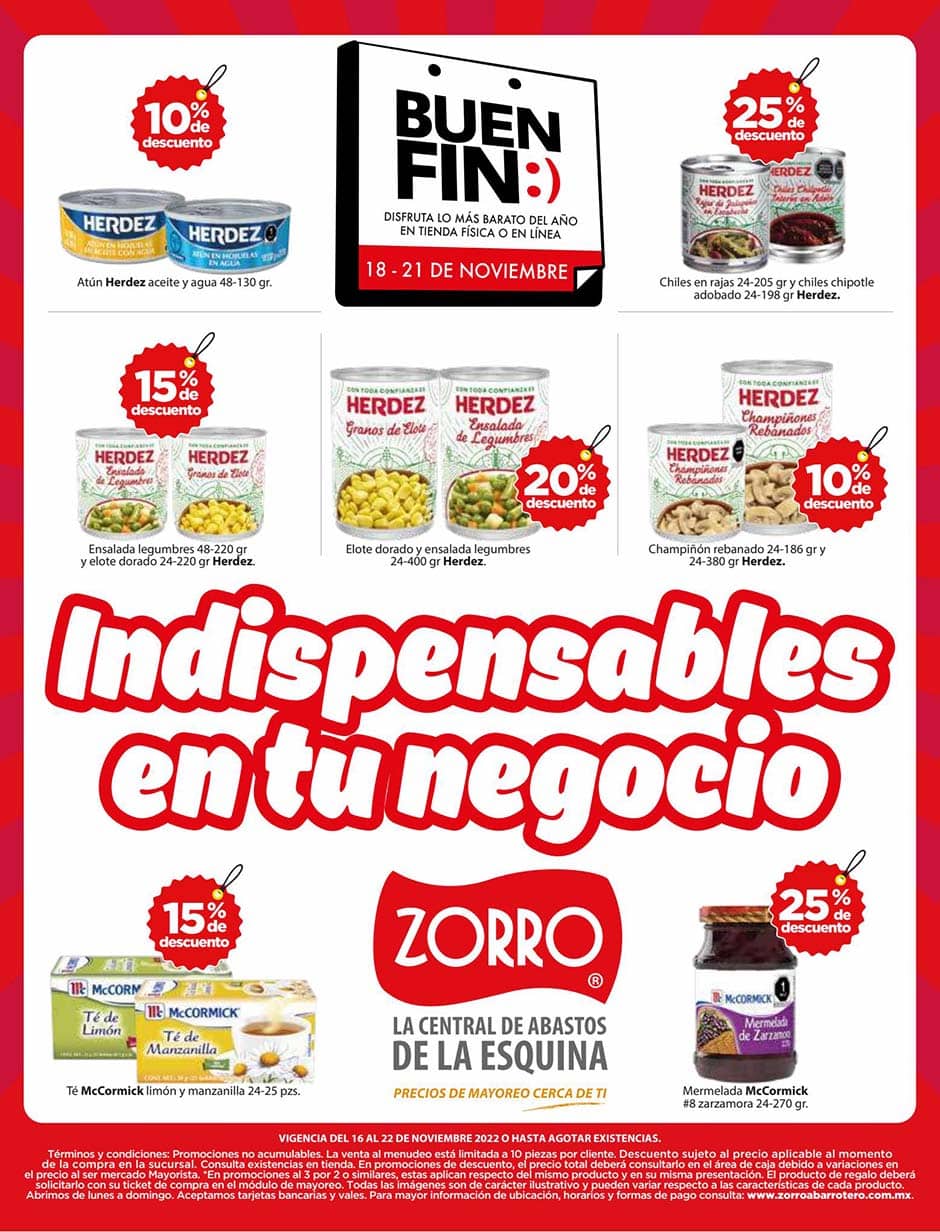 Le comparto el folleto de Zorro Abarrotero para el Buen Fin 2022 con ofertas y promociones validas del 16 al 22 de noviembre de 2022, donde encentraras promociones de 2×1, 3×2, 4×3, 5×4, Producto Gratis, descuentos y precios especiales en mercancía seleccionada.