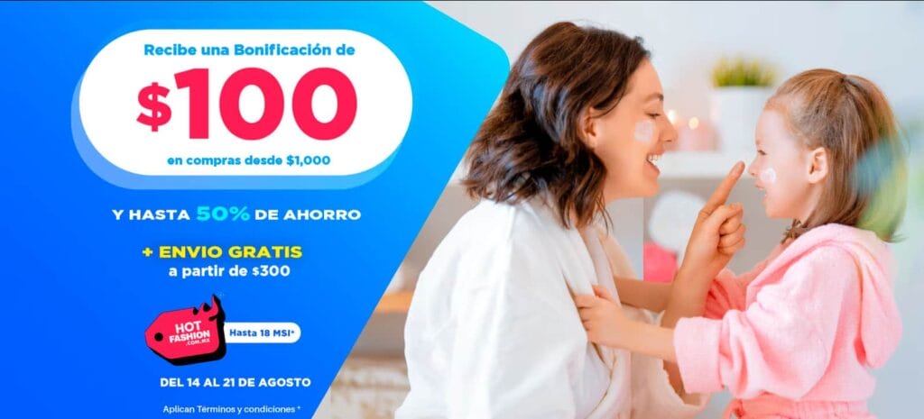 Farmacias Guadalajara en la promoción Hot Fashion te ofrece una Bonificación de $100 en compras desde $1,000 y hasta 50% de descuento. Además obtén Envió Gratis en compras a partir de $300 pesos y hasta 18 meses sin intereses.