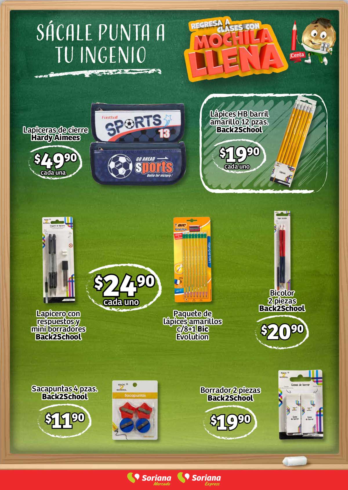 Soriana Mercado y Express presentan su folleto Regresa a Clases con Mochila Llena, que contiene sus ofertas válidas del 23 al 31 de agosto de 2023, donde encontrarás 3×2, 4×3, 5×4, Segundo a mitad de precio, descuentos, precios especiales y hasta 18 Meses sin intereses en artículos seleccionados que aplican en sus sucursales físicas participantes.