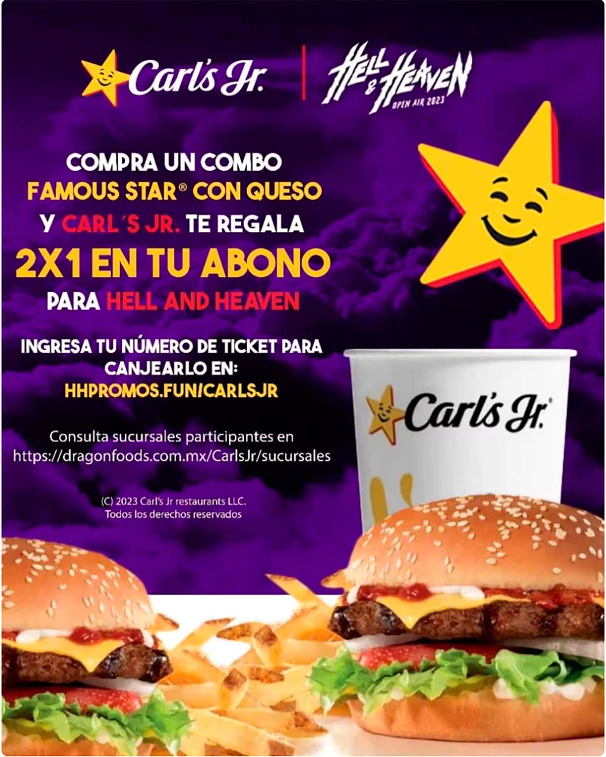 Carl’s Jr: 2×1 en tu abono para Hell and Heaven al comprar combo Famous Star con queso
