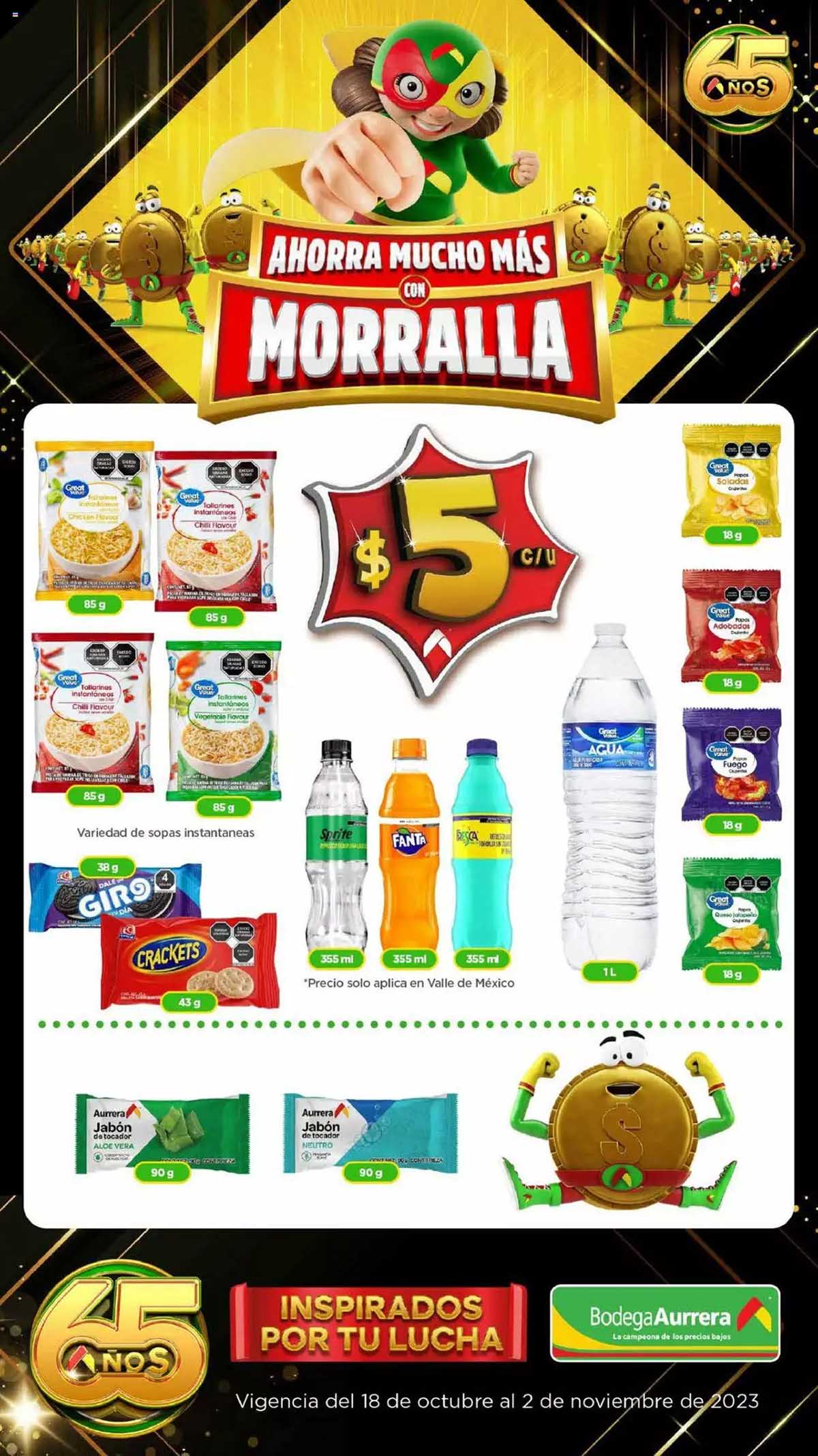 Ya tenemos el folleto de Bodega Aurrera “Ahorra Mucho Más con Morralla” que contiene ofertas válidas del 18 de octubre al 02 de noviembre de 2023, donde encontrarás descuentos y precios especiales en productos seleccionados de abarrotes, alimentos, bebidas, hogar, bebes, limpieza, cuidado personal y más.