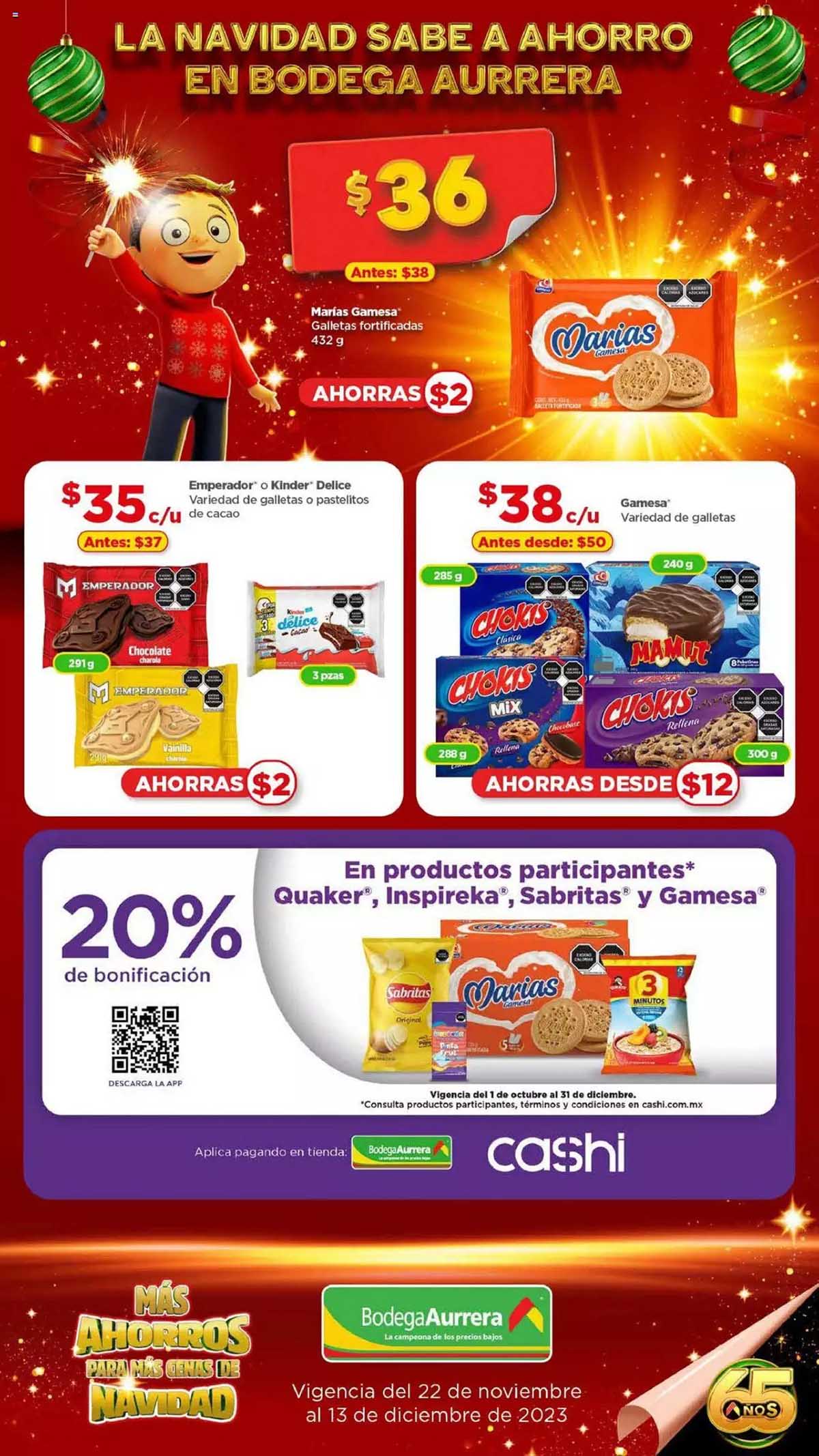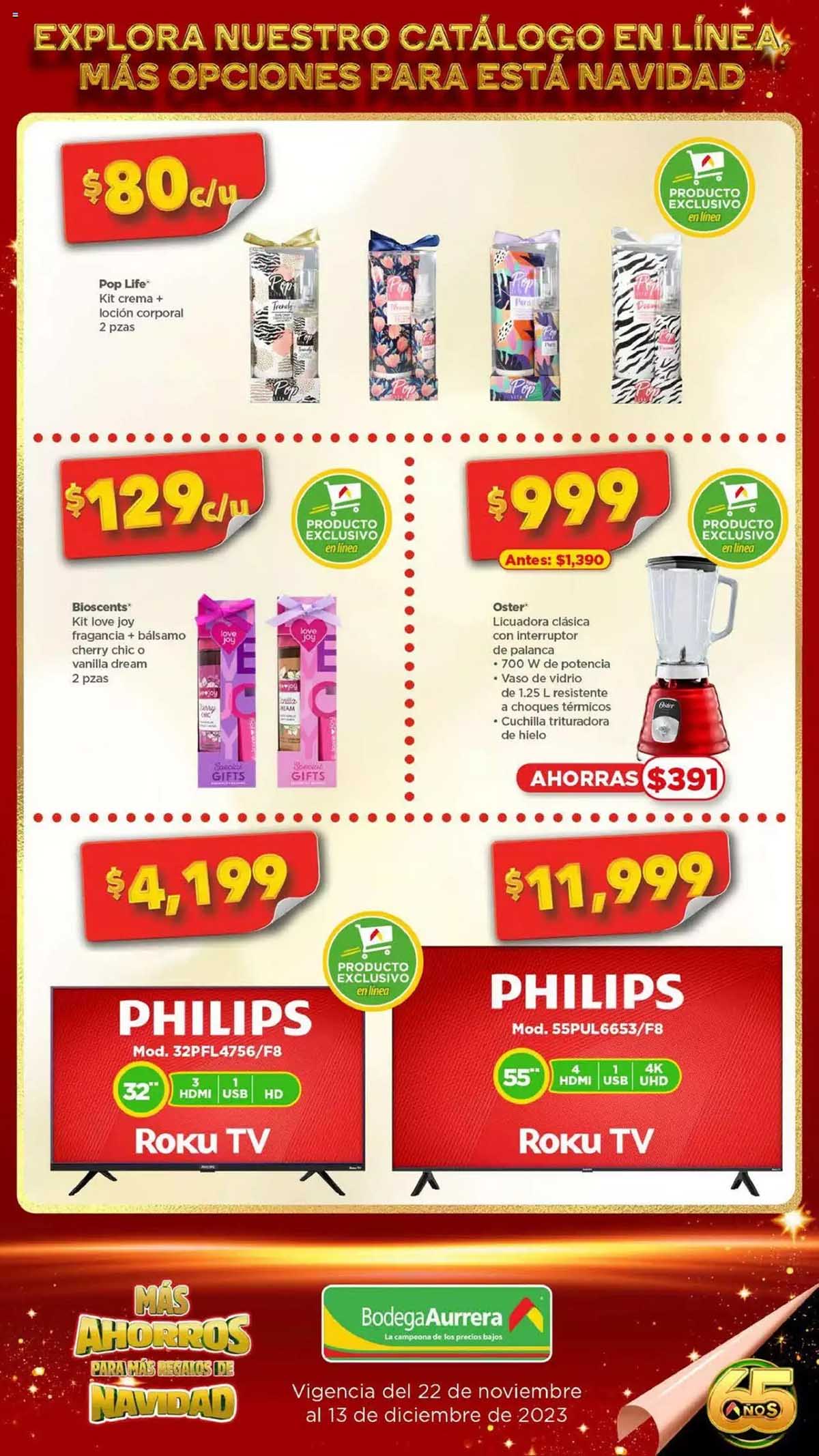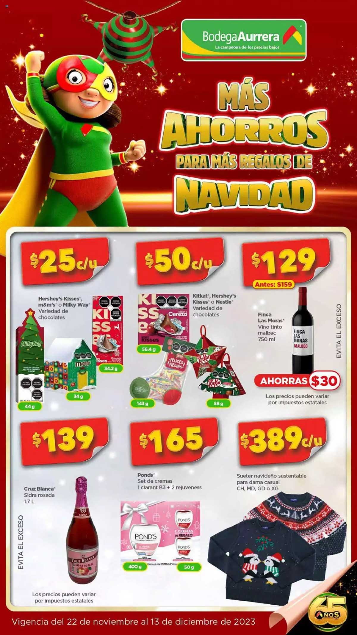 Les comparto el folleto de Bodega Aurrerá Más Ahorros para Más Regalos de Navidad, que contiene ofertas validas del 22 de noviembre al 13 de diciembre de 2023, donde encontraras promociones, descuentos y precios bajos en productos seleccionados de abarrotes, ropa, cuidado personal, juguetes, videojuegos, bebes, hogar, computadoras, celulares, pantallas y más.