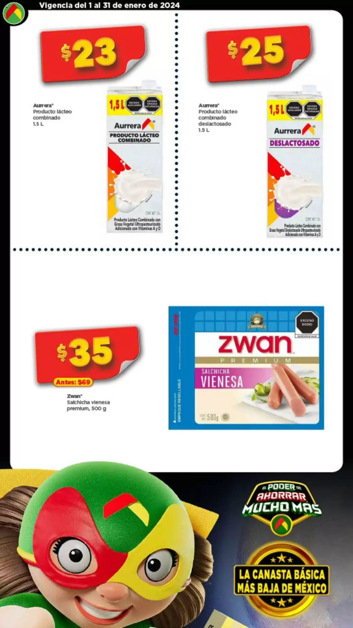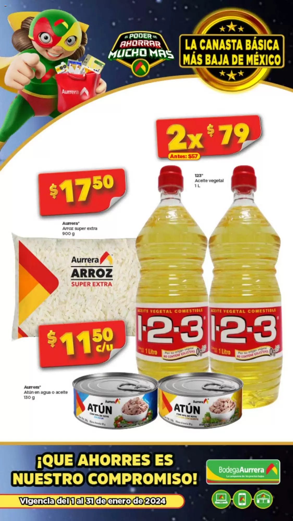 Les comparto el nuevo folleto de Bodega Aurrerá La Canasta Básica más Baja de México vigente del 1 al 31 de enero de 2024, donde encontraras descuentos y precios especiales en productos seleccionados de abarrotes, alimentos, despensa, hogar, limpieza y cuidado personal.