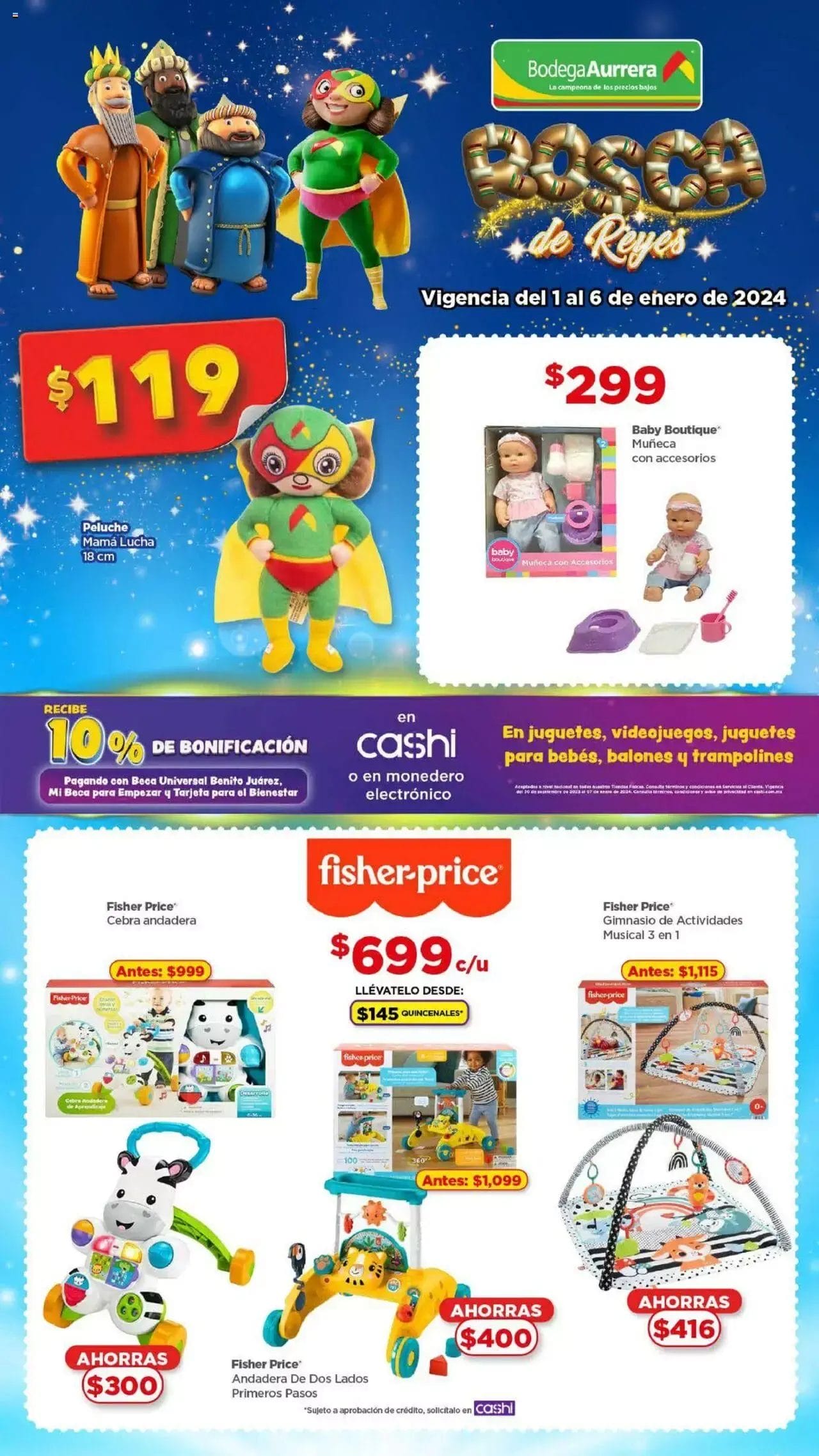 Les comparto el nuevo folleto de Bodega Aurrerá Rosca de Reyes, que contiene ofertas validas del 1 al 6 de enero de 2024, donde encontraras promociones y descuentos especiales en rocas de reyes, juguetes, videojuegos, celulares, videojuegos, pantallas, dulces y mucho más.
