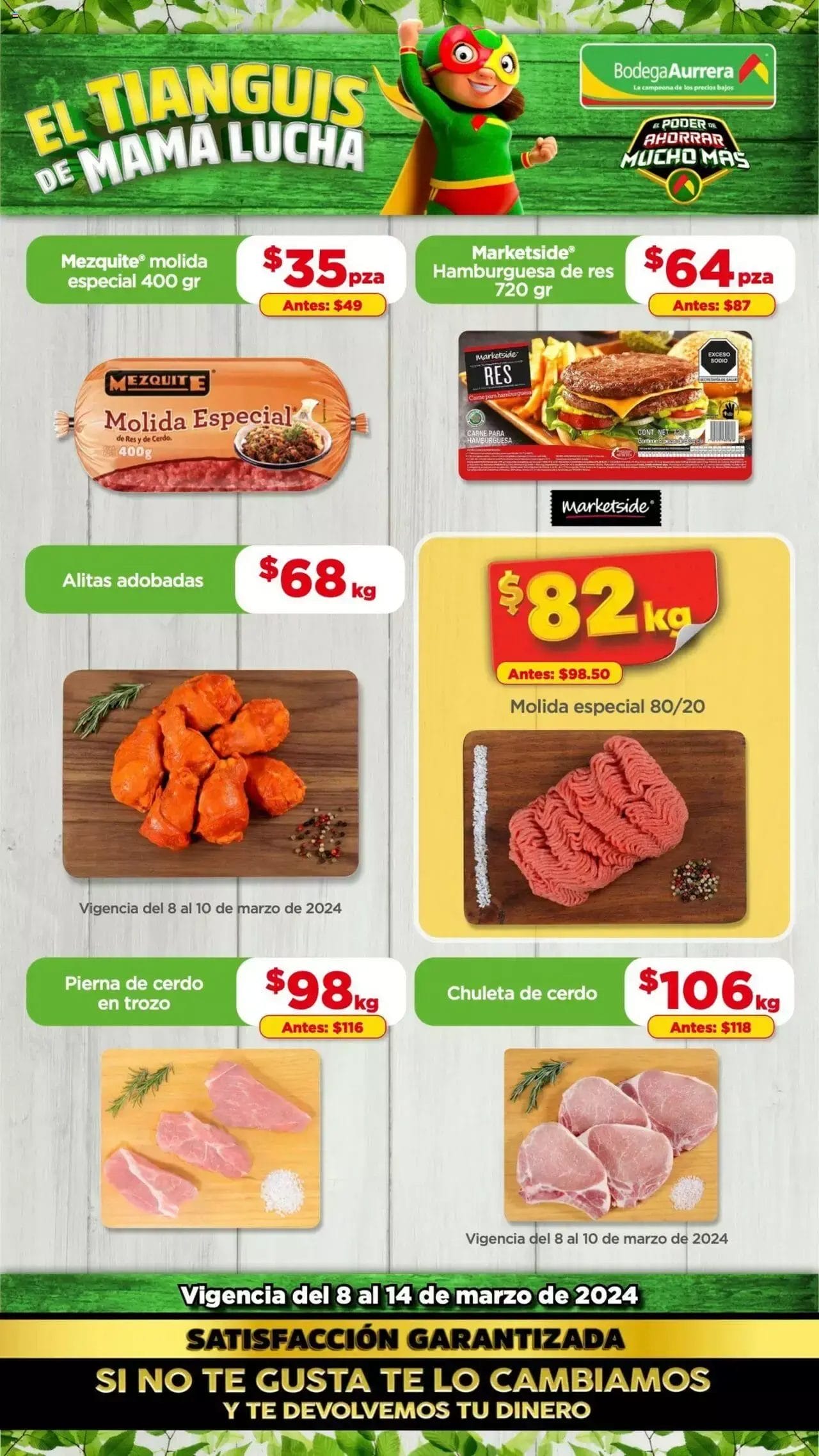 Las tiendas Bodega Aurrera presentan su folleto “Tianguis de Mamá Lucha” con ofertas en frutas y verduras válidas hasta el 14 de marzo de 2024, donde encontraras Descuentos y precios Precios especiales en carnes, frutas y verduras.