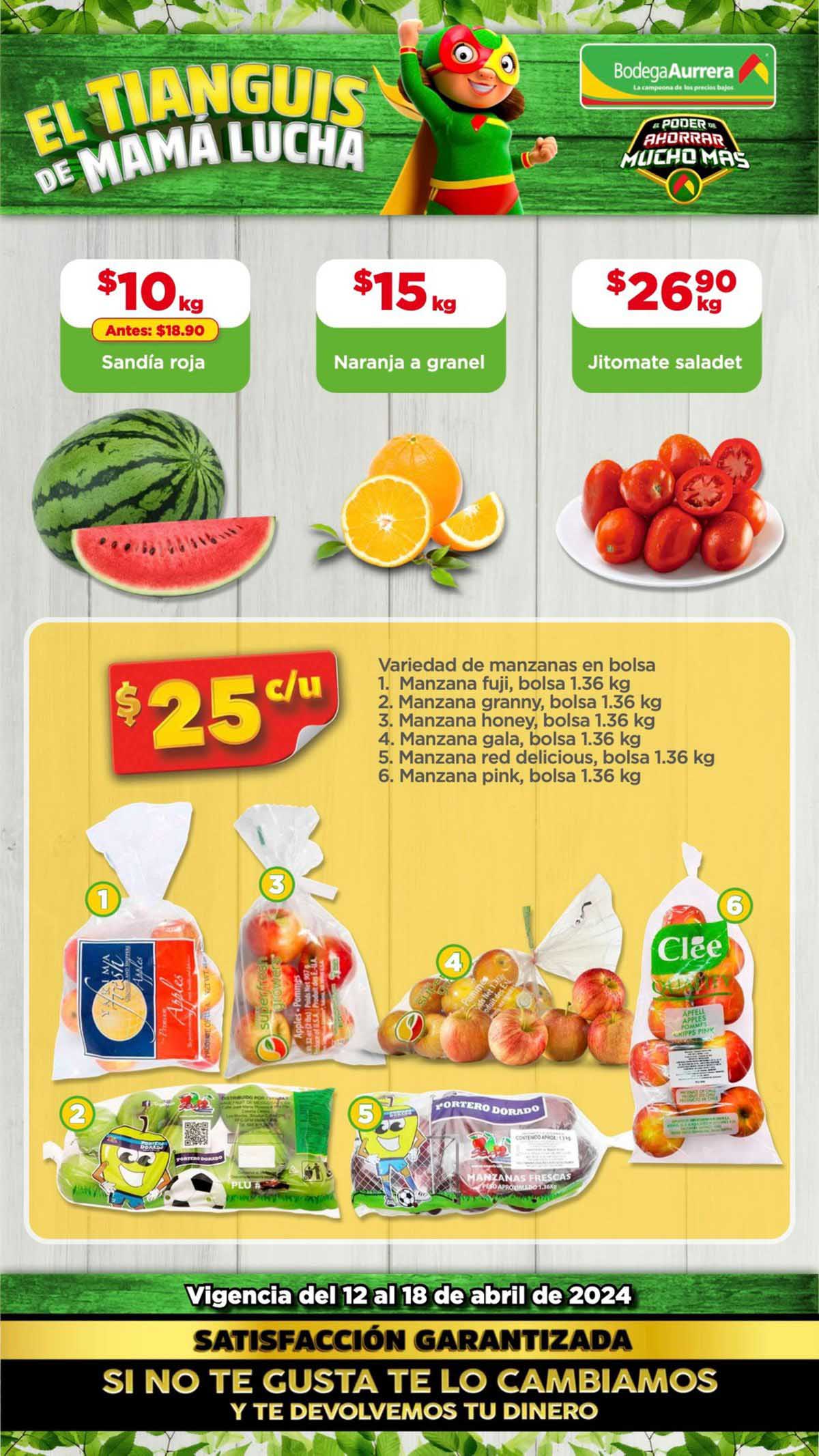 El Tianguis de Mamá Lucha de Bodega Aurrerá tiene prepararas las siguientes ofertas de frutas y verduras validas del 12 al 18 de abril de 2024, donde encontraras precios especiales que aplican en productos seleccionados en su tienda en línea bodegaaurrera.com.mx y en sus sucursales físicas.
