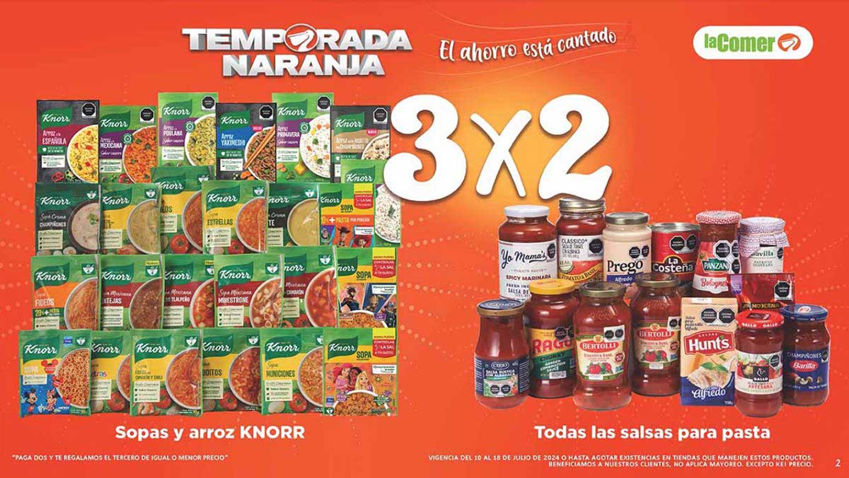 Les comparto el nuevo Folleto de La Comer y Fresko Temporada Naranja, El Ahorro está Cantando valido del 10 al 18 de julio de 2024, donde encontrarás promociones 2×1, 3×2, 4×2, 4×3, descuentos y Precios especiales en productos seleccionados que aplican en su tienda en línea: lacomer.com.mx y en sus sucursales físicas.
