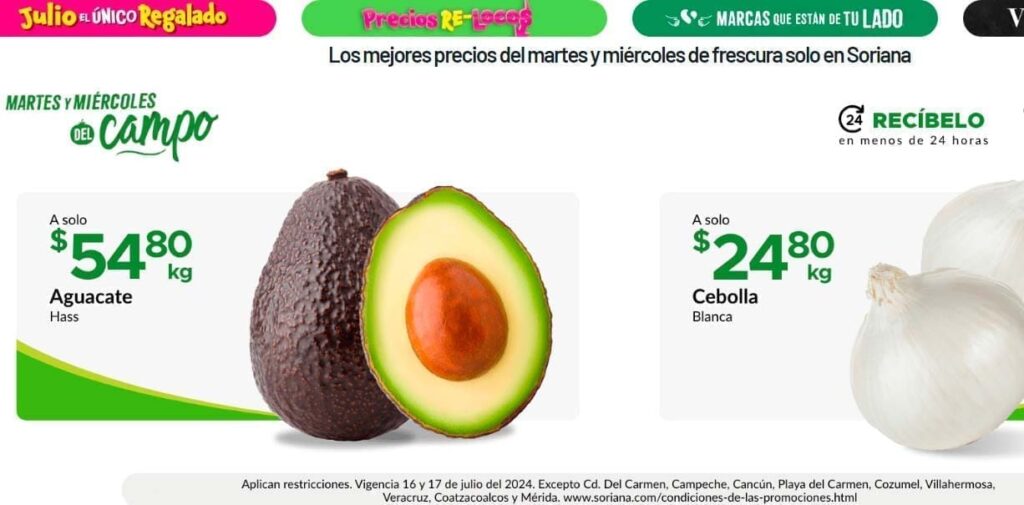 El Martes y Miércoles del Campo de Soriana Súper ofrece las siguientes ofertas de frutas y verduras para este 16 y 17 de julio 2024, donde encontraras precios especiales según su folleto de promociones.