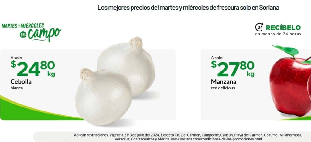 El Martes y Miércoles del Campo de tiendas Soriana Súper tienen las siguientes ofertas de frutas y verduras para este 2 y 3 de junio de 2024, donde encontraras precios especiales según su folleto de promociones.