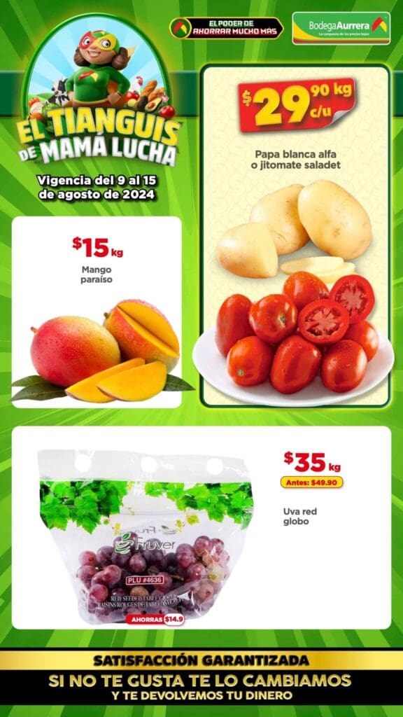 Ahora les comparto el nuevo Folleto de Bodega Aurrerá con las siguientes ofertas de frutas y verduras válidas del 9 al 15 de agosto de 2024, donde encontraras precios especiales que aplican en productos seleccionados en su tienda en línea bodegaaurrera.com.mx y en sus sucursales físicas.