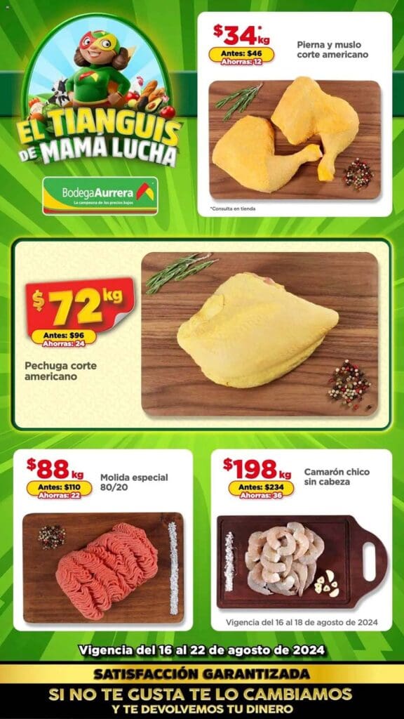 Acaba de salir el folleto “El Tianguis de Mamá Lucha” de las tiendas Bodega Aurrerá valido del 09 al 15 de agosto de 2024 con ofertas en frutas y verduras. Aplica en su tienda en línea bodegaaurrera.com.mx y en sus sucursales físicas.