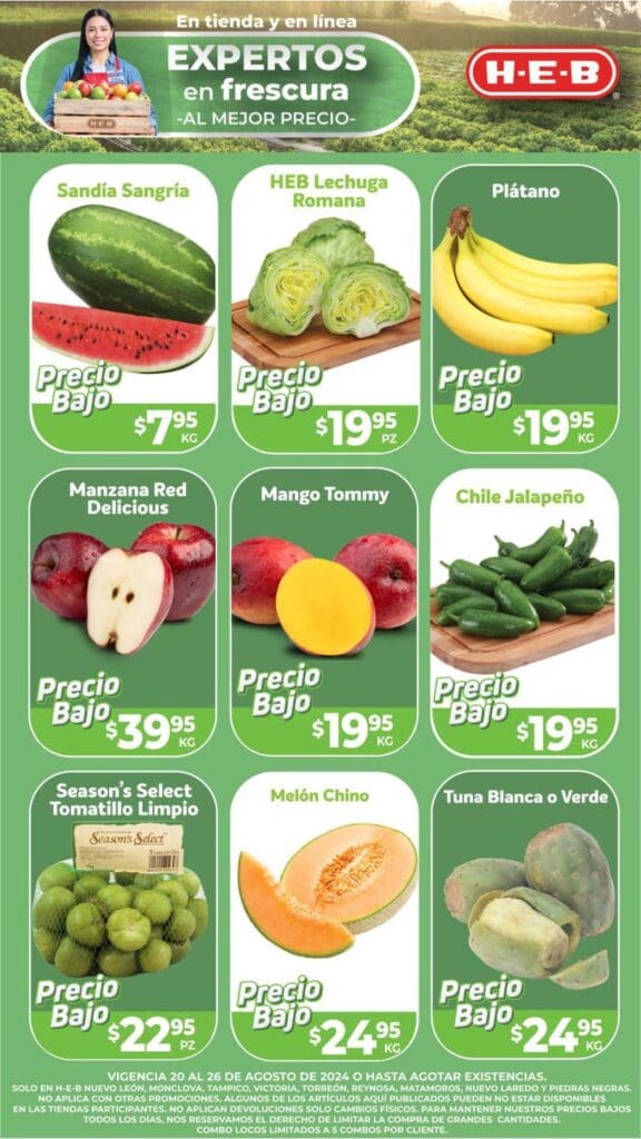 Ofertas HEB frutas y verduras del 20 al 26 de agosto 2024