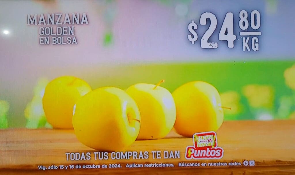 - Manzana golden en bolsa a $24.80 el kilo.