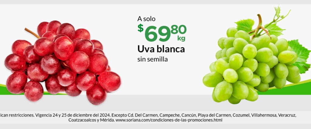 - Uva blanca sin semilla a $68.80 el kilo