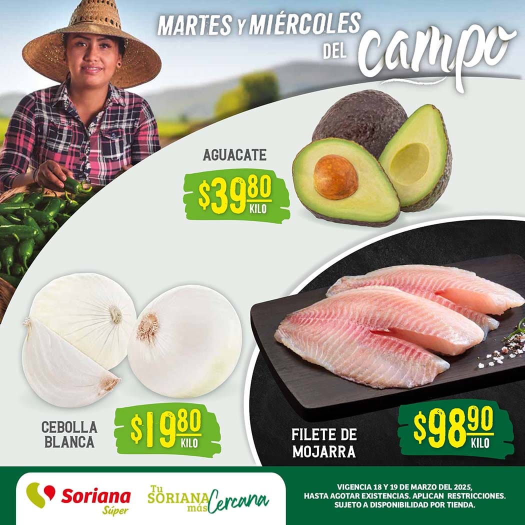 El Martes y Miércoles del Campo de Soriana Súper tendrán las siguientes ofertas en carnes, frutas y verduras válidas el 18 y 19 de marzo de 2025, donde encontrarás precios especiales toda la semana. Te comparto la lista completa de precios para que surtas tu despensa y ahorres varios pesos.