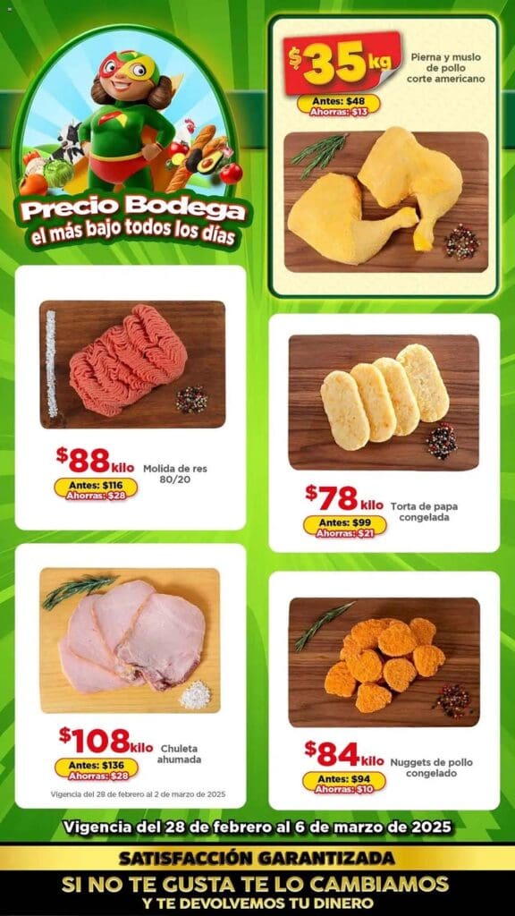El Tianguis de Mamá Lucha de Bodega Aurrerá presenta las siguientes ofertas en carnes, frutas y verduras válidas hasta el 6 de marzo de 2025 con precios bajos que aplican en productos seleccionados de su tienda en línea bodegaaurrera.com.mx y en sucursales físicas.