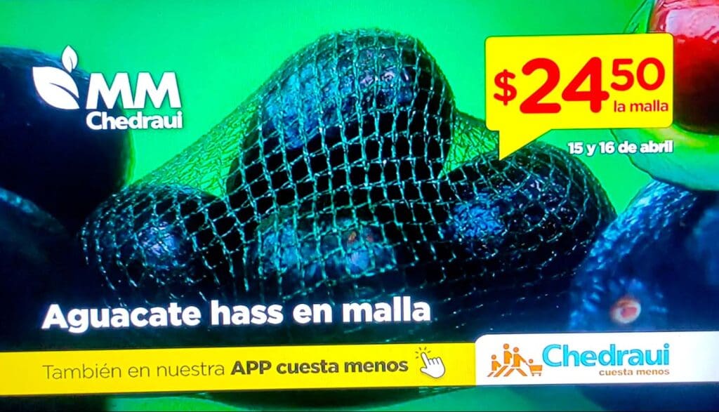 - Aguacate Hass en Malla a $24.50 el kilo.