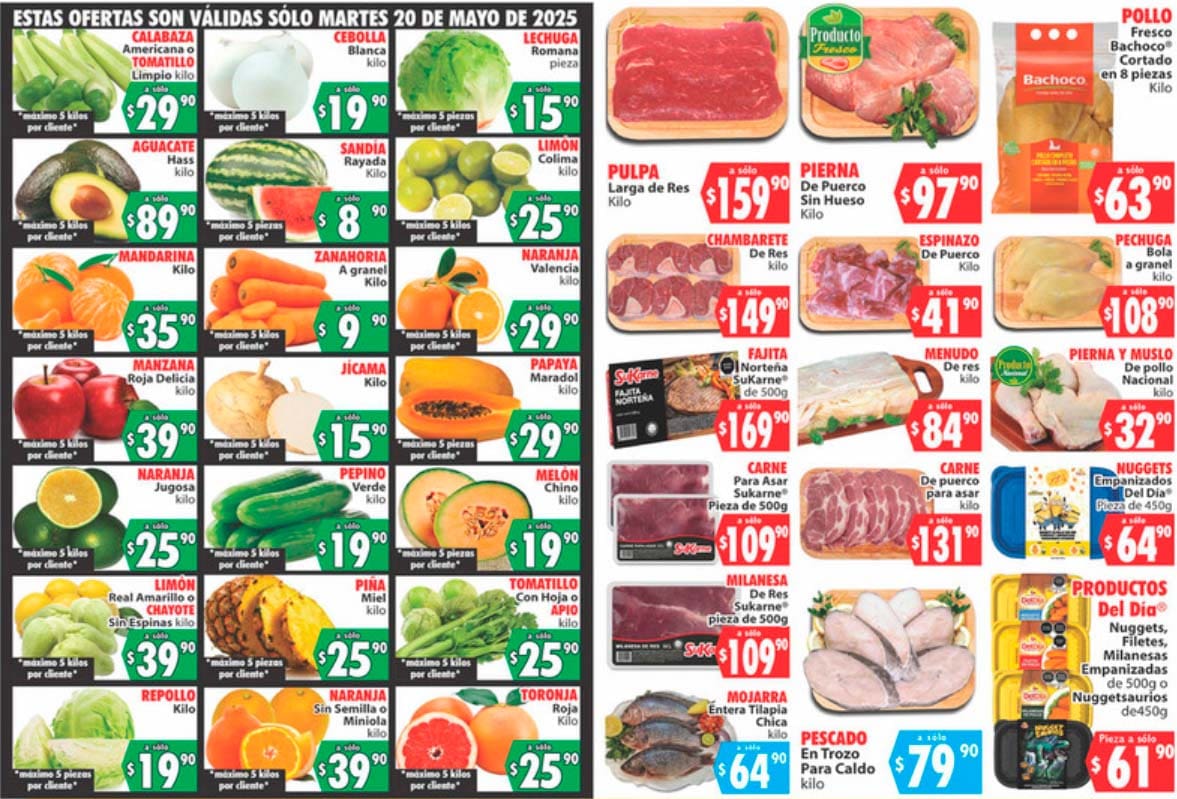 Te compartimos el Folleto de Casa Ley con todas las ofertas en Carnes, Frutas y Verduras válidas para hoy martes 20 y mañana miércoles 21 de mayo de 2025, donde encontrarás precios bajos en productos seleccionados que aplican en sucursales participantes.