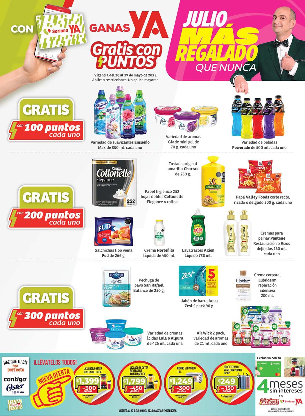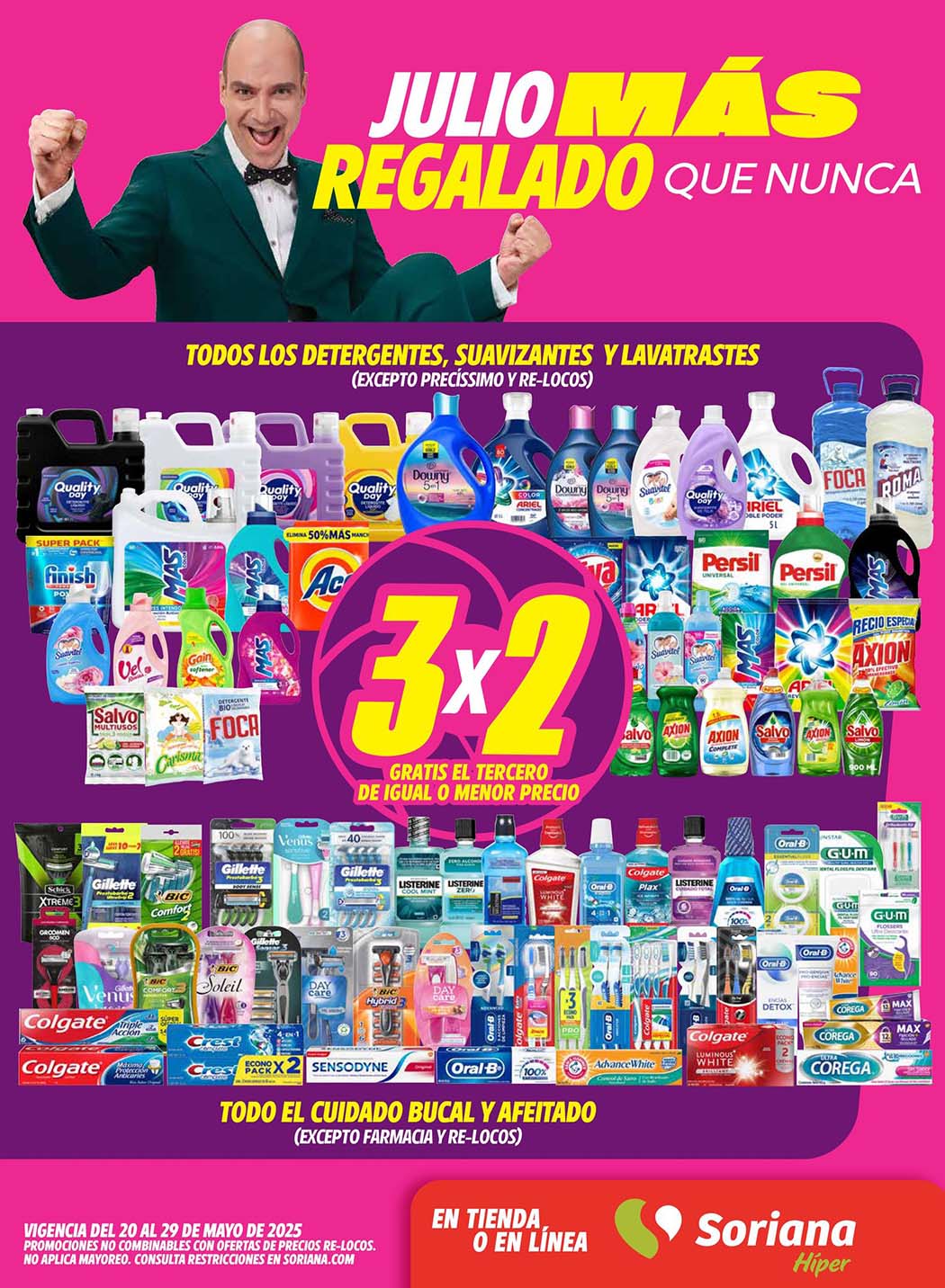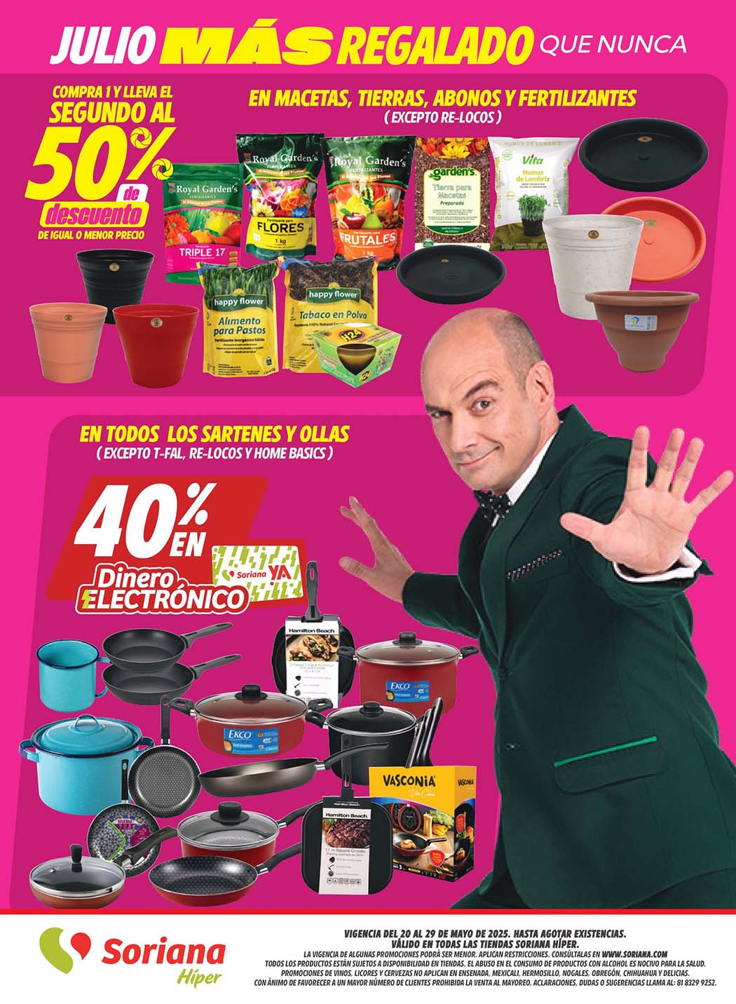 Les comparto el Primer Folleto Julio Regalado 2025 de tiendas Soriana Híper, que contiene sus ofertas válidas del 20 al 29 de mayo de 2025. Julio Más Regalado que Nunca. En el que puedes aprovechar la Segunda unidad al 50% ó 70% de descuento, Beneficios con tu Tarjeta Soriana Ya, Productos Gratis con una determinada cantidad Puntos, Ofertas especiales en la compra de determinadas unidades, Precios Re-Locos y hasta 6 Meses sin intereses