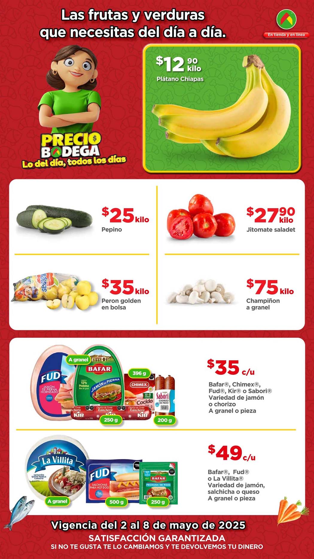 Ya tenemos las ofertas del Tianguis de frutas y verduras de Bodega Aurrerá en su folleto Precio Bodega válido del 2 al 8 de mayo de 2025, aprovecha de precios especiales que aplican en productos seleccionados de su tienda en línea bodegaaurrera.com.mx y en sucursales físicas.