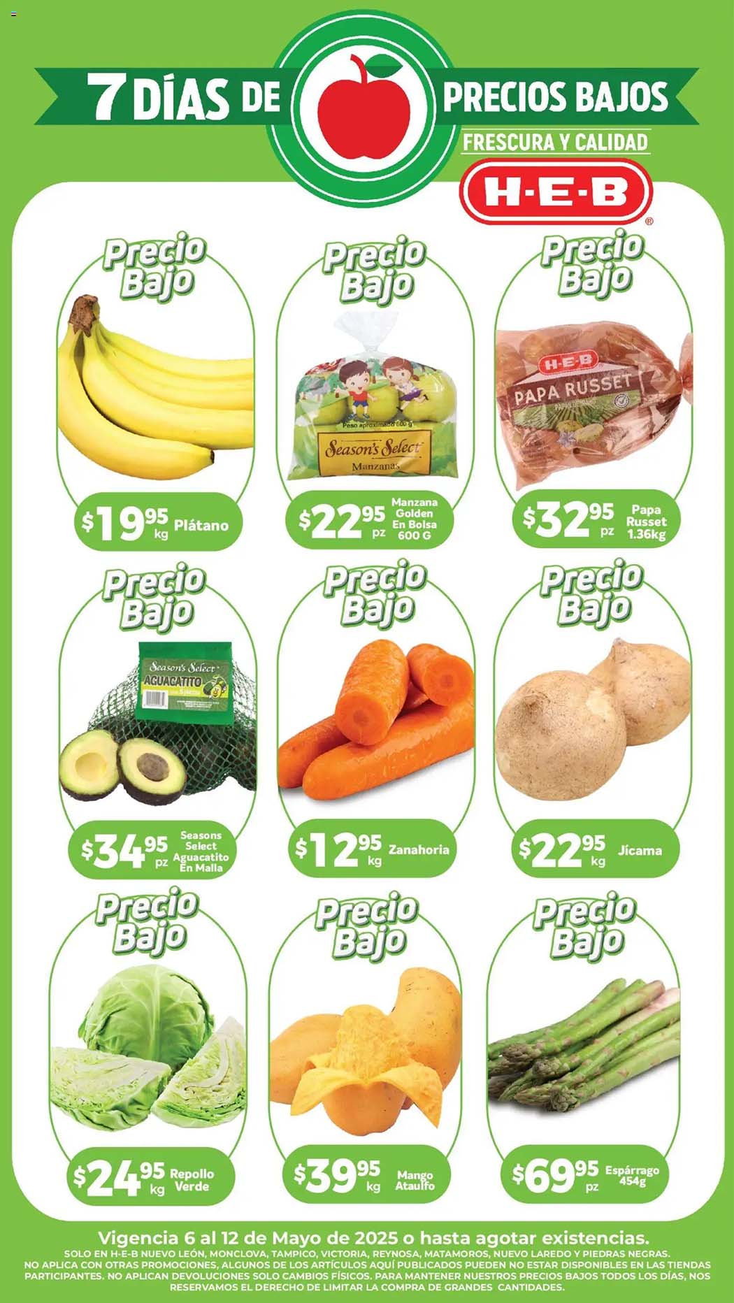 Ya está publicado el folleto de HEB “7 Días de Precios Bajos” con las ofertas de frutas y verduras válidas del 6 al 12 de mayo 2025, en el que encontrarás promociones especiales en sucursales participantes de la República Mexicana.