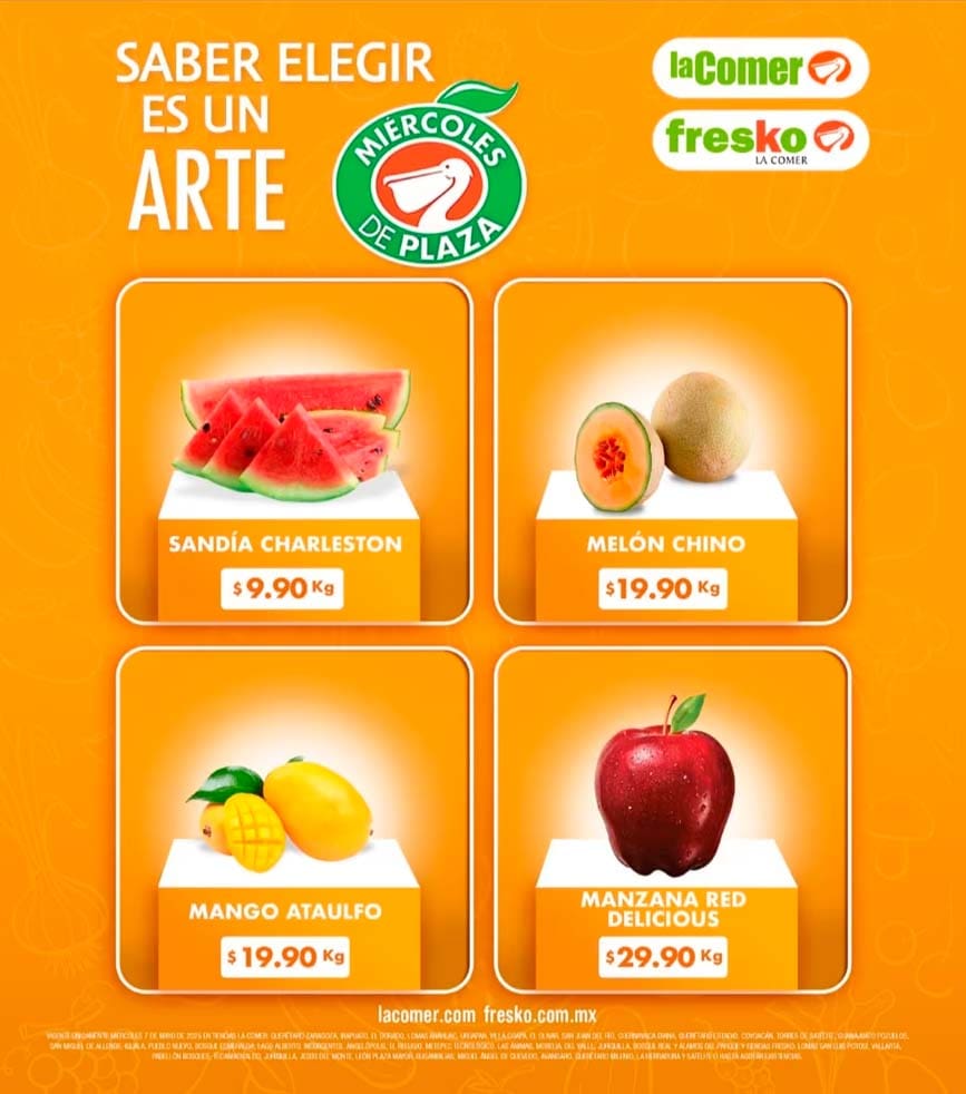 El Miércoles de Plaza de La Comer y Fresko tiene preparadas las siguientes ofertas en frutas y verduras válidas el 7 de mayo de 2025, donde encontrarás precios especiales que aplican en sucursales participantes de toda la Republica Mexicana.
