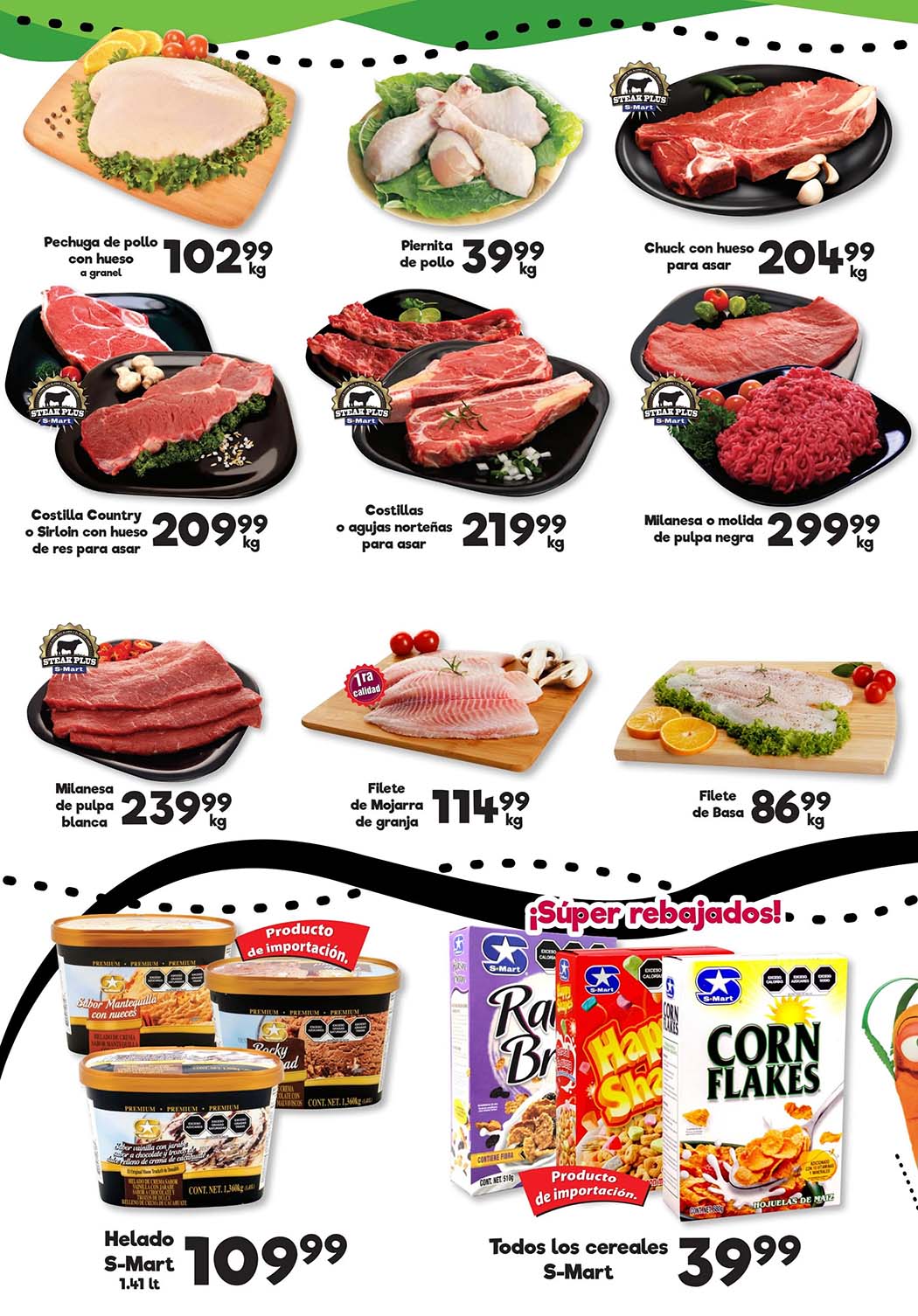 - Costilla o agujas norteñas para asar a $219.99 el kilo.