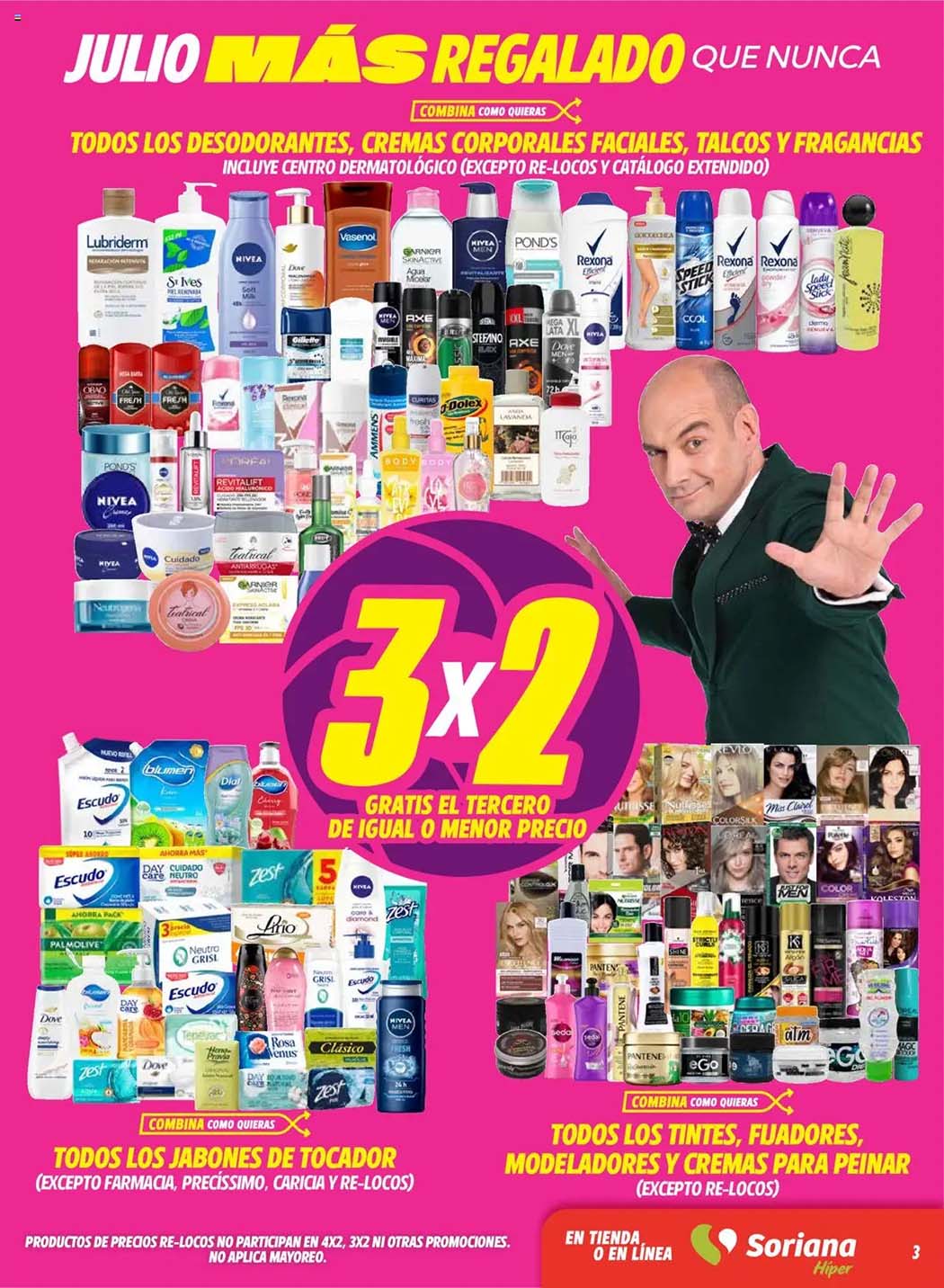 - 3×2 en Todos los Desodorantes, Cremas Corporales Faciales, Talcos y Fragancias (incluye dermatológico; excepto Precíssimo y Re-Locos)