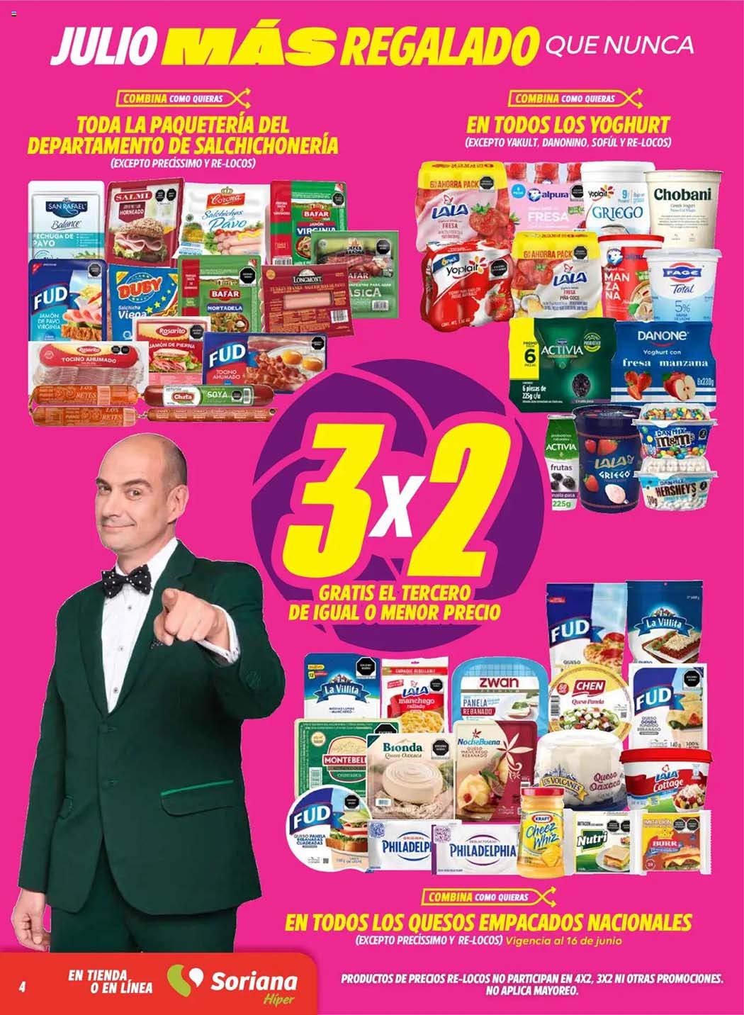 Acaba de salir el folleto Julio, Más Regalado que Nunca de Soriana Híper, que contiene ofertas validas del 13 al 19 de junio de 2025, donde encontrarás 2×1, 3×2, 4×2, 4×3, hasta un 50% en Dinero electrónico Soriana Ya, Ahorros especiales en la compra de determinadas unidades, Beneficios con tu Tarjeta Soriana Ya, Precios Re-Locos, hasta 70% de descuento, Precios especiales y hasta 18 Meses sin intereses en artículos seleccionados que aplican en su tienda en línea soriana.com y en sus sucursales físicas.