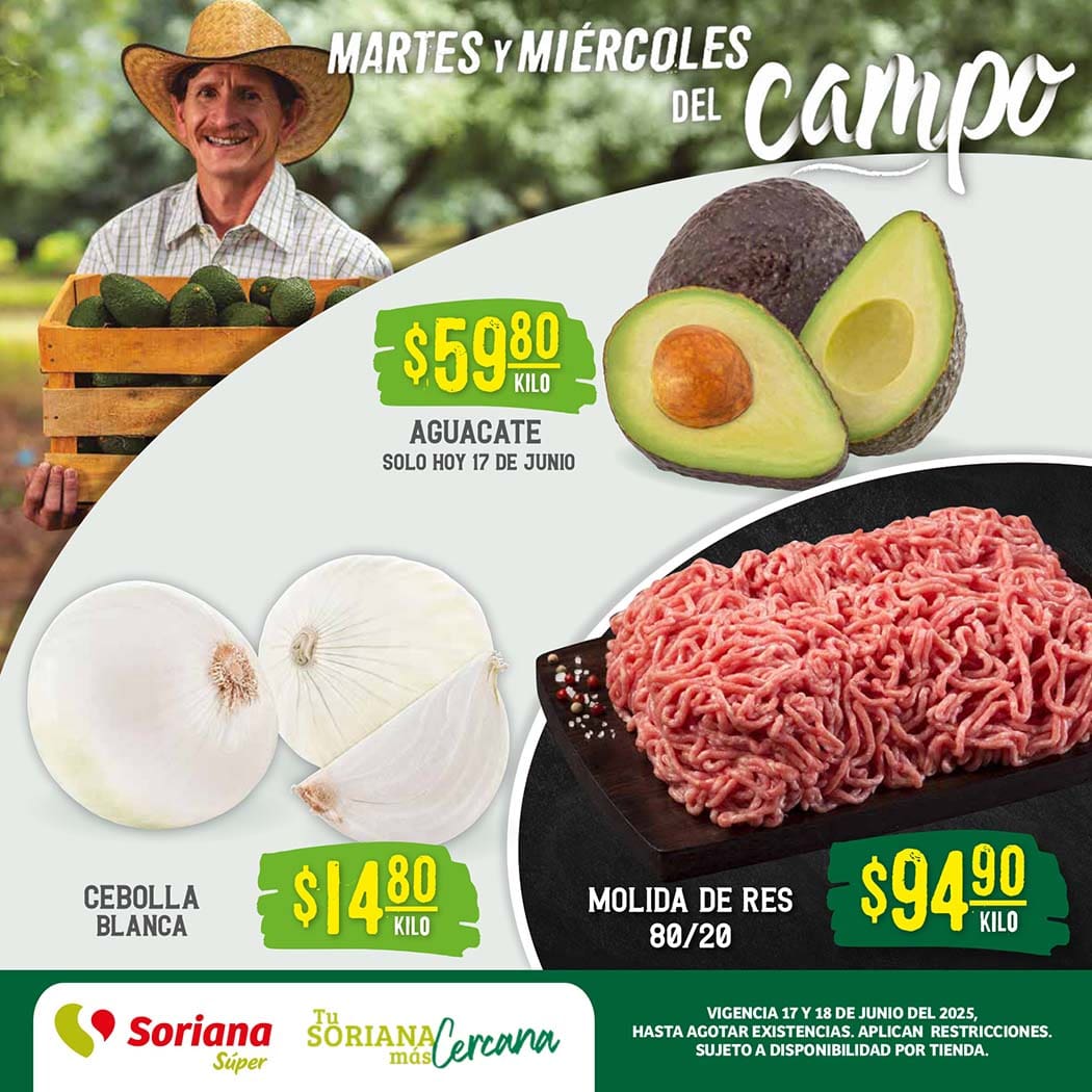 El Martes y Miércoles del Campo de tiendas Soriana Súper presentan las siguientes ofertas en carnes, frutas y verduras válidas los días 17 y 18 de junio de 2025, en el que encontrarás precios especiales en sucursales participantes toda la semana. Les comparto la lista completa de precios para que surtas tu despensa y ahorres varios pesos.