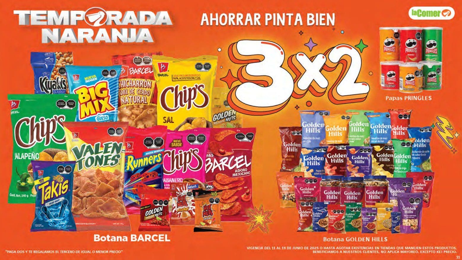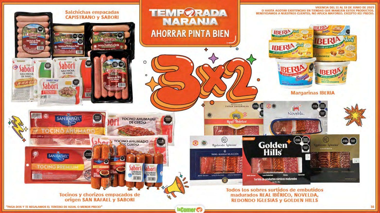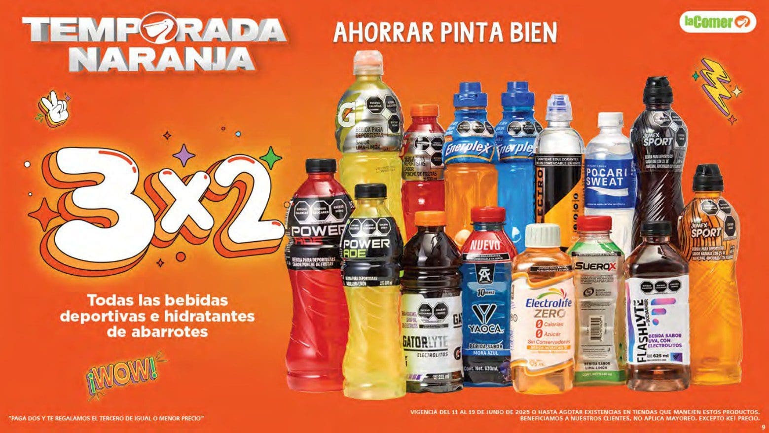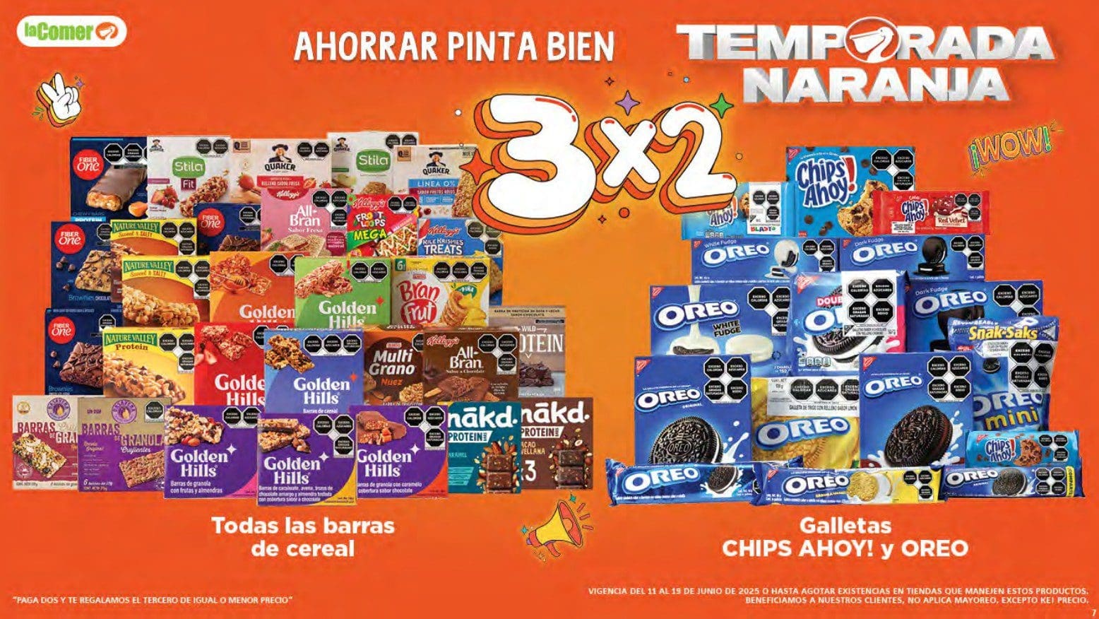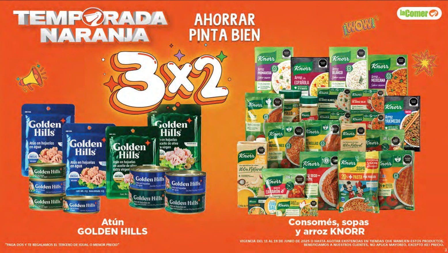 Ya tenemos el folleto de La Comer y Fresko Temporada Naranja, Ahorrar Pinta Bien, que contiene ofertas válidas del 11 al 19 de junio de 2025, donde encontrarás promociones de 2×1, 3×2, Bonificaciones en tu Monedero Naranja, Descuentos y Precios especiales que aplican en productos seleccionados de su tienda en línea lacomer.com.mx y en sus sucursales físicas.