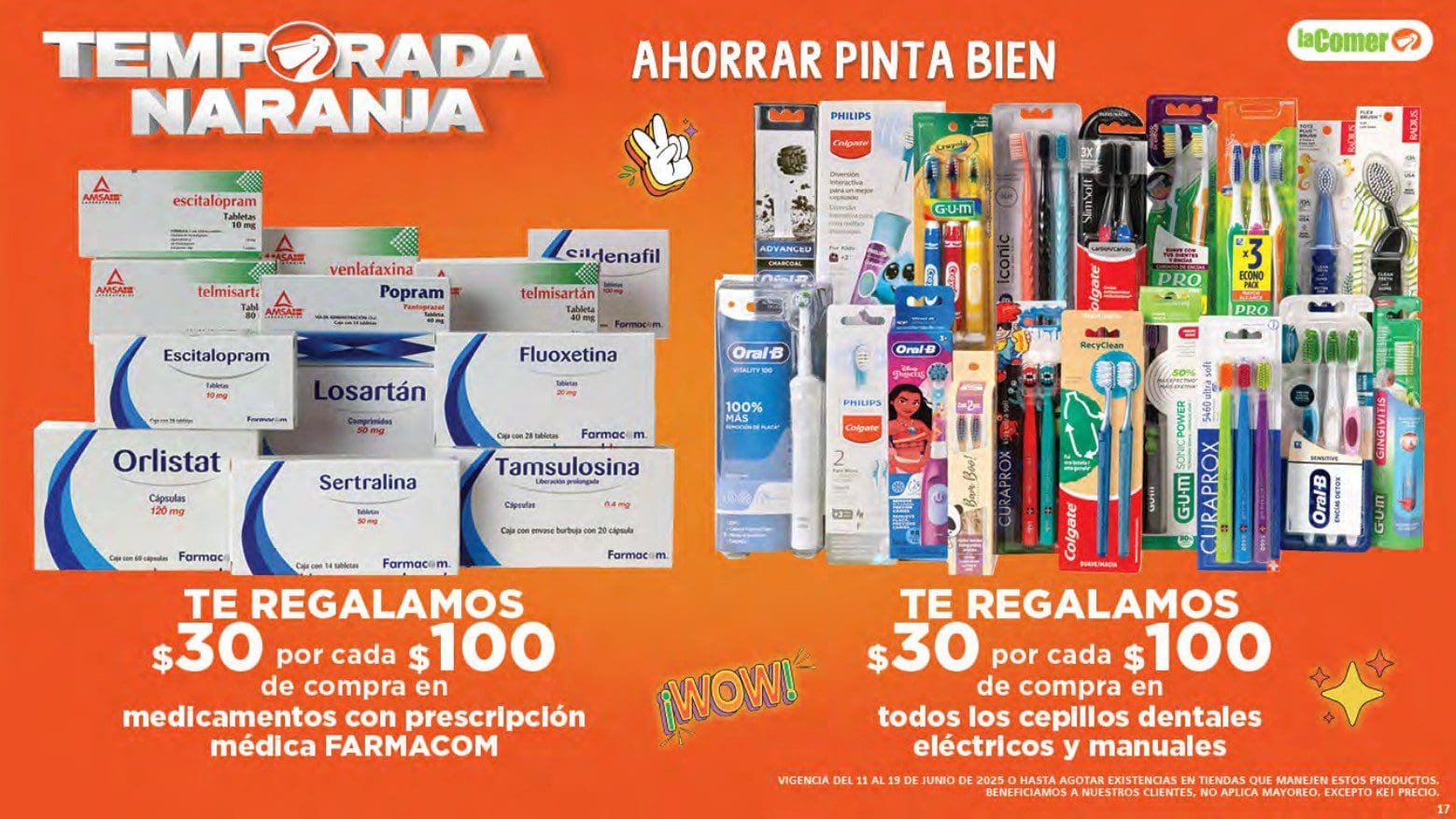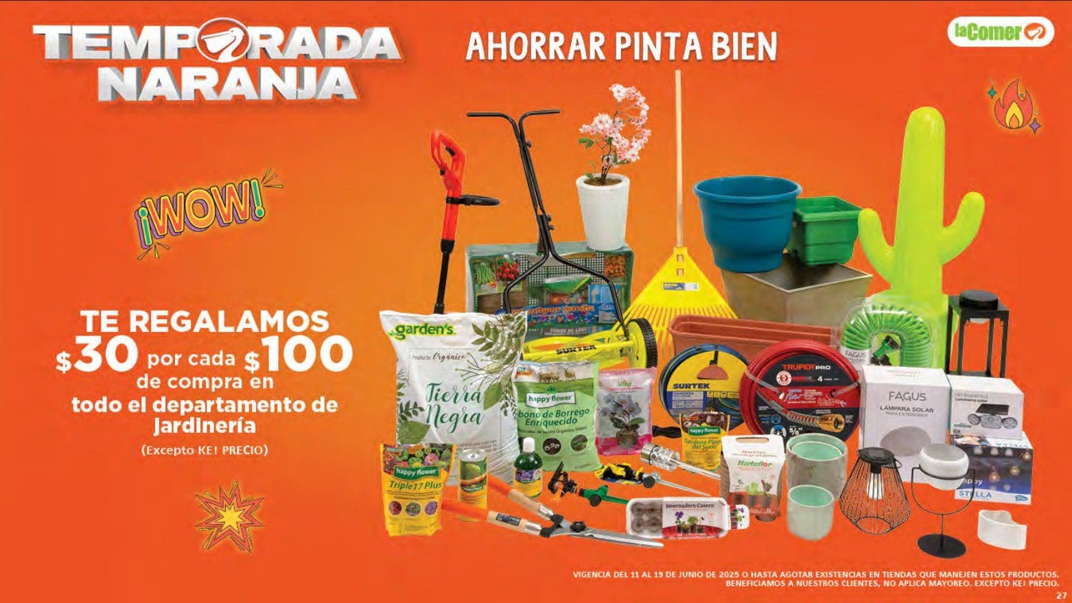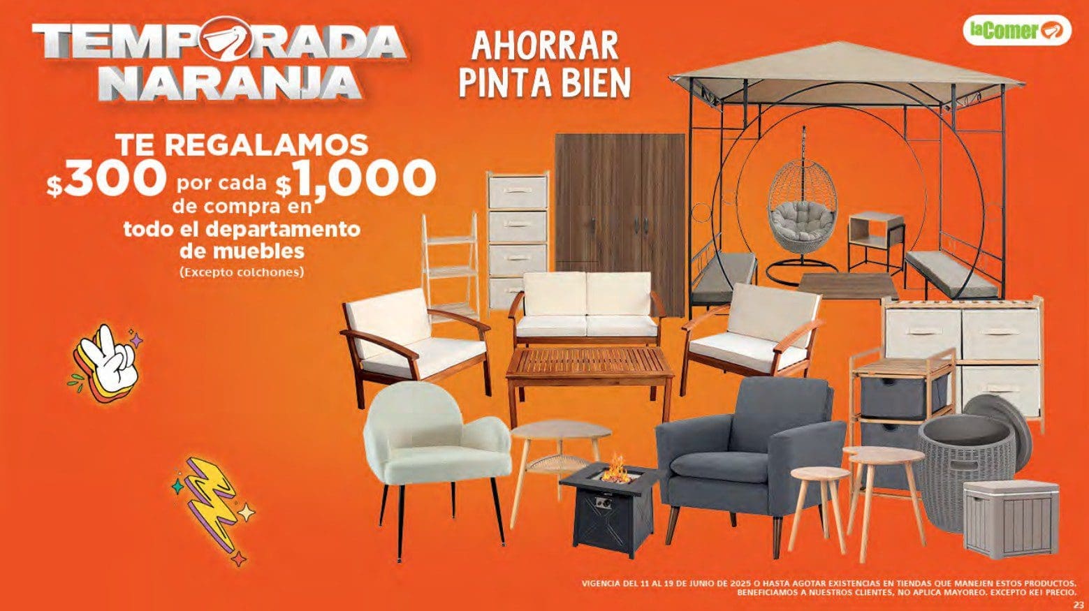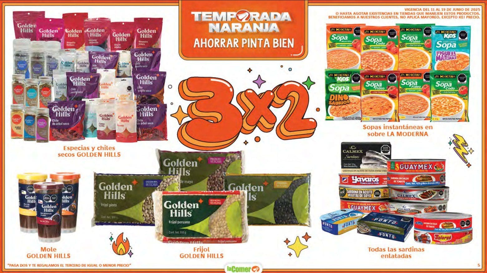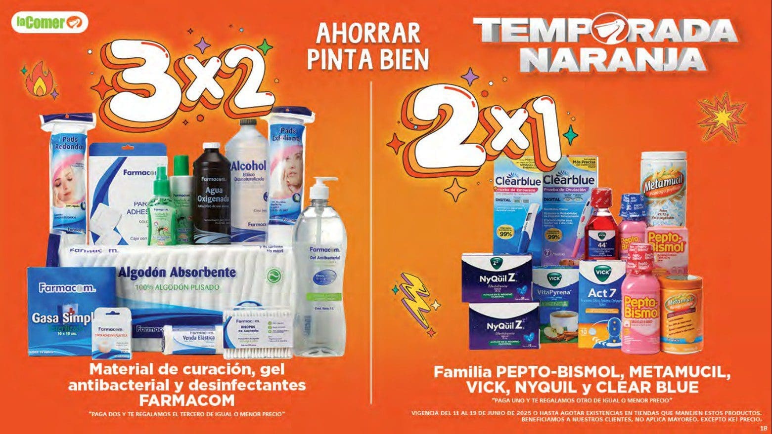 Ya tenemos el folleto de La Comer y Fresko Temporada Naranja, Ahorrar Pinta Bien, que contiene ofertas válidas del 11 al 19 de junio de 2025, donde encontrarás promociones de 2×1, 3×2, Bonificaciones en tu Monedero Naranja, Descuentos y Precios especiales que aplican en productos seleccionados de su tienda en línea lacomer.com.mx y en sus sucursales físicas.