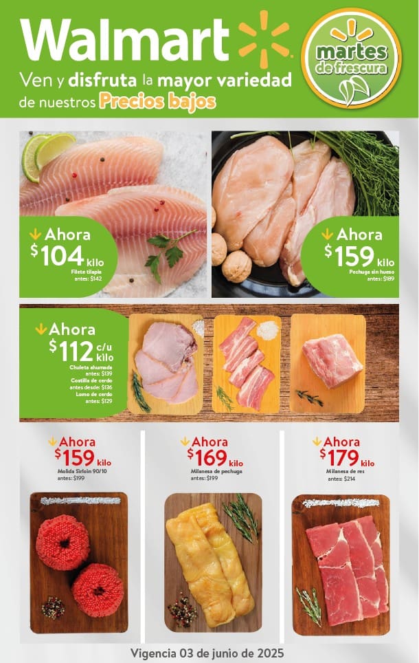 El Martes de Frescura Walmart de esta semana presenta las siguientes ofertas en carnes, frutas y verduras válidas el 3 de junio de 2025 que aplican en tiendas Walmart y Walmart Express de la República Mexicana. Te comparto la lista completa de precios que puedes aprovechar esta semana.