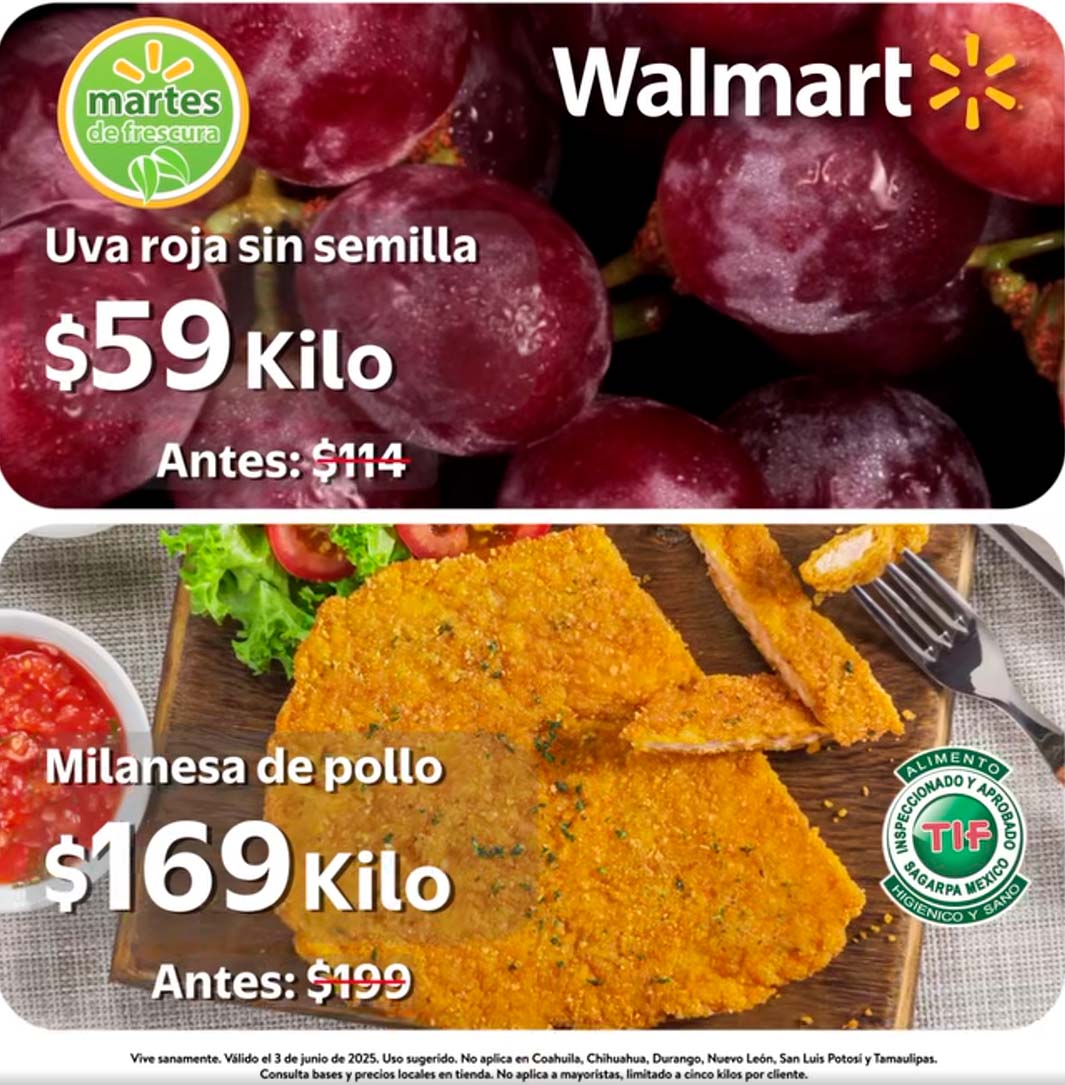 Ofertas Martes de Frescura en Walmart válidas a nivel Nacional (No aplica en los estados de Nuevo León, Coahuila, Chihuahua, Tamaulipas, Durango ni San Luis Potosí):